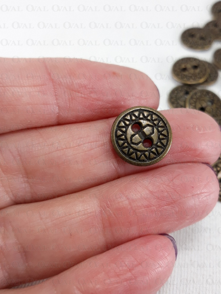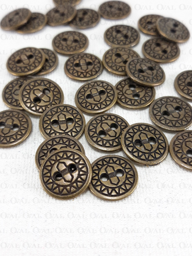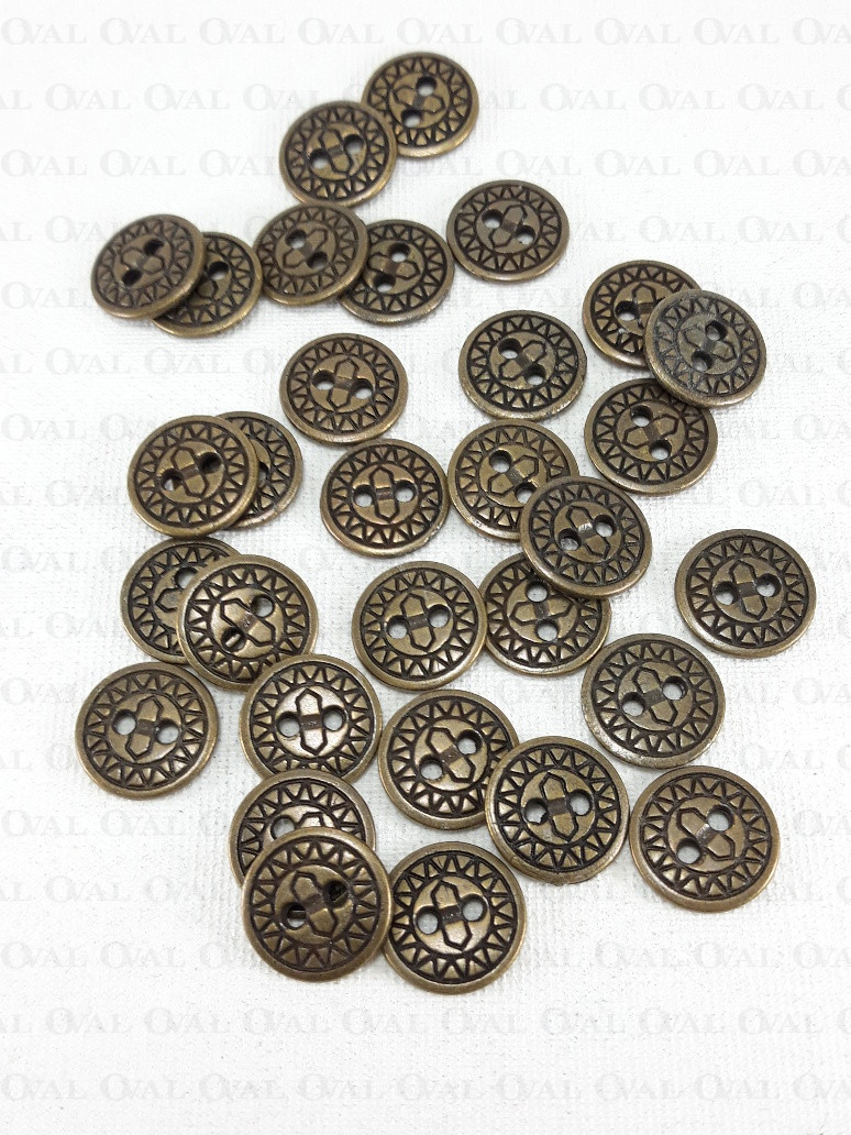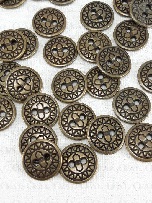 Metal button with holes.