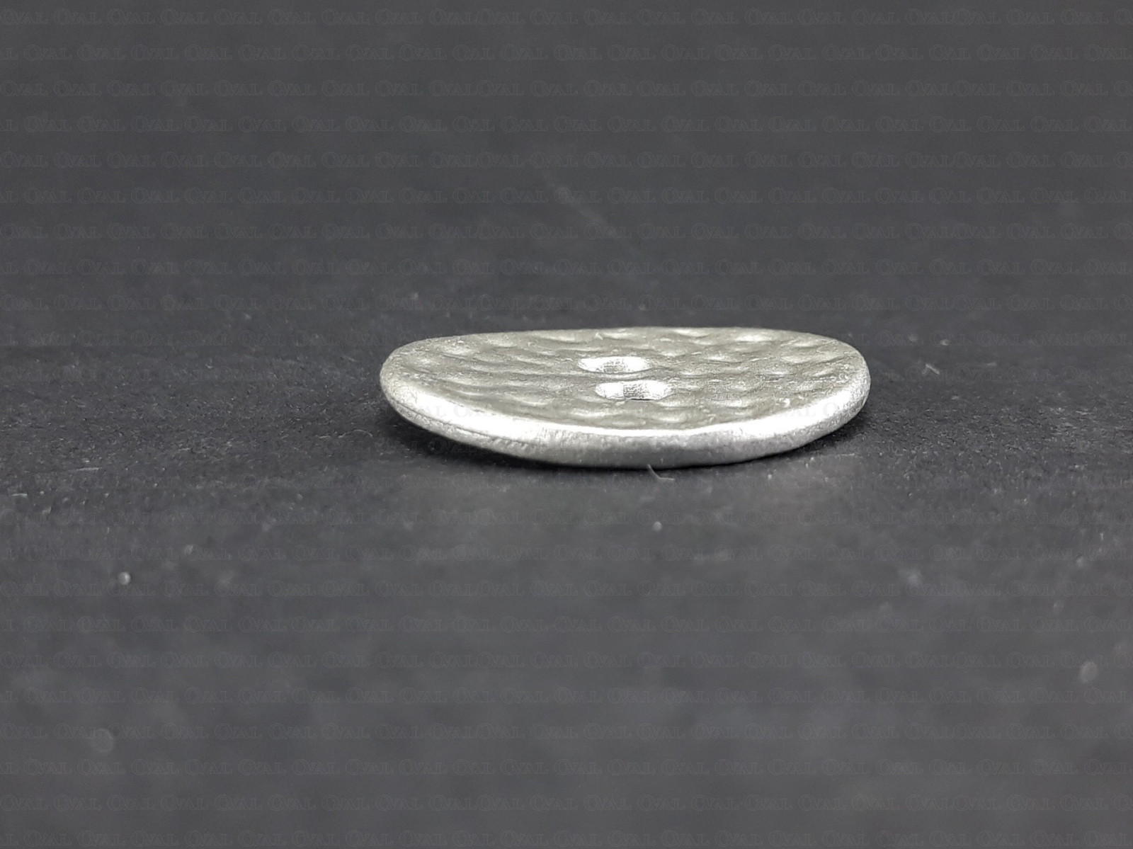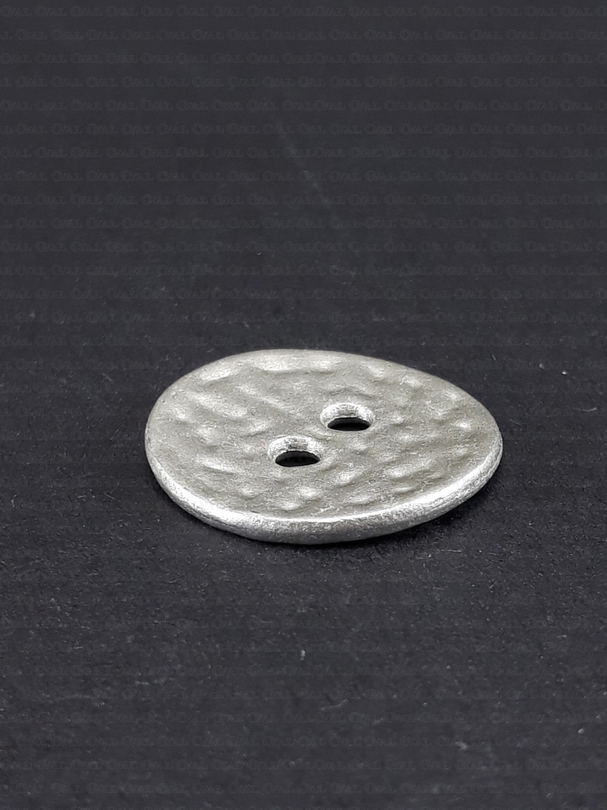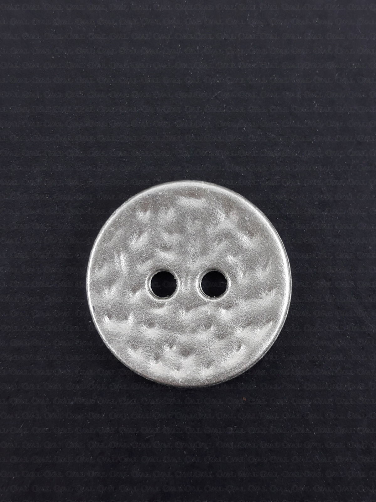 Metal button in a matte light silver finish.