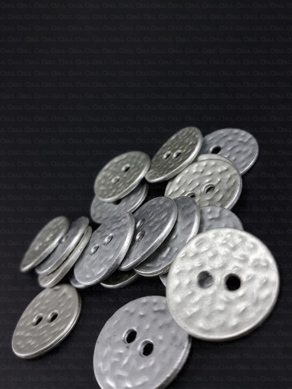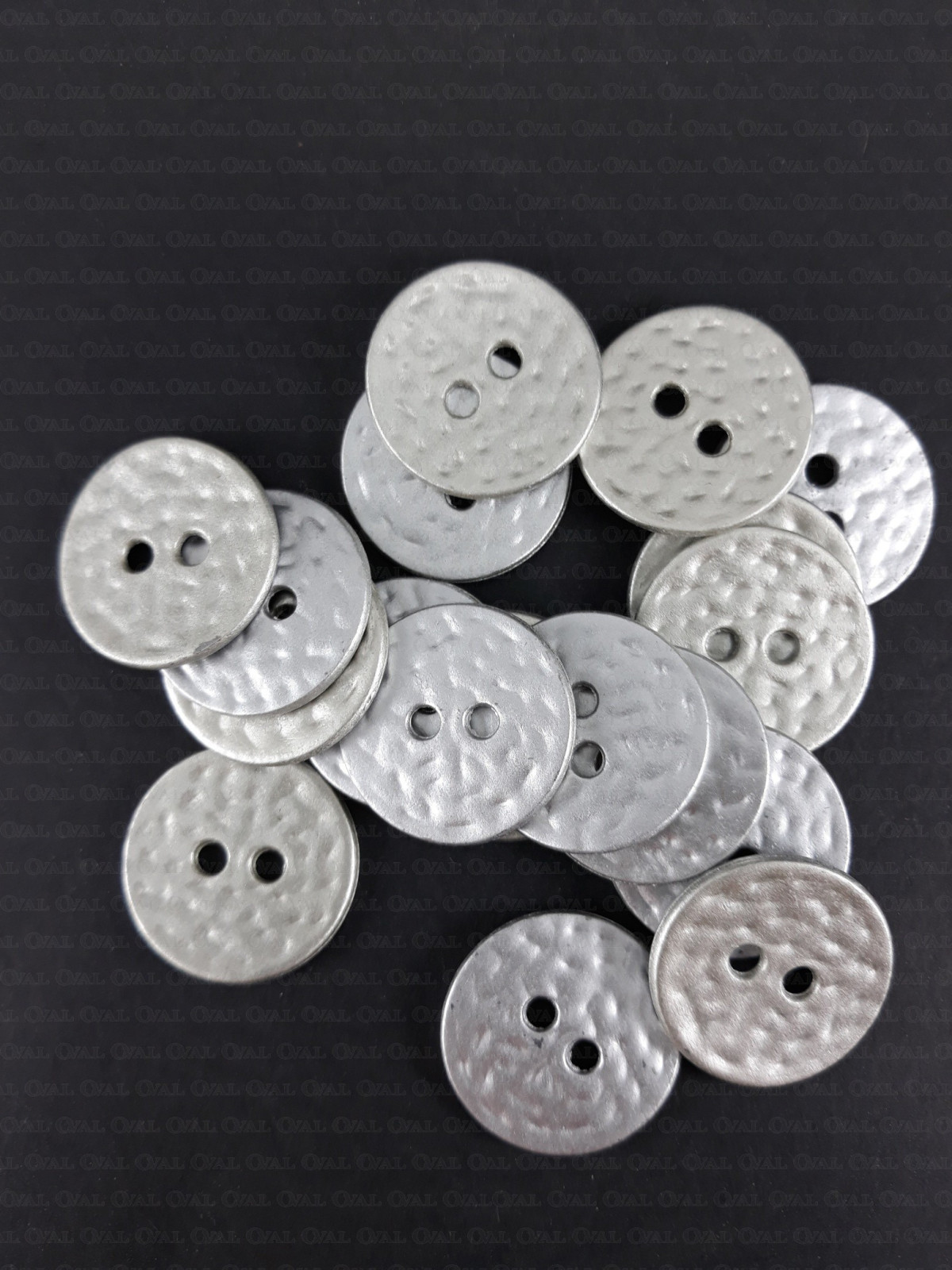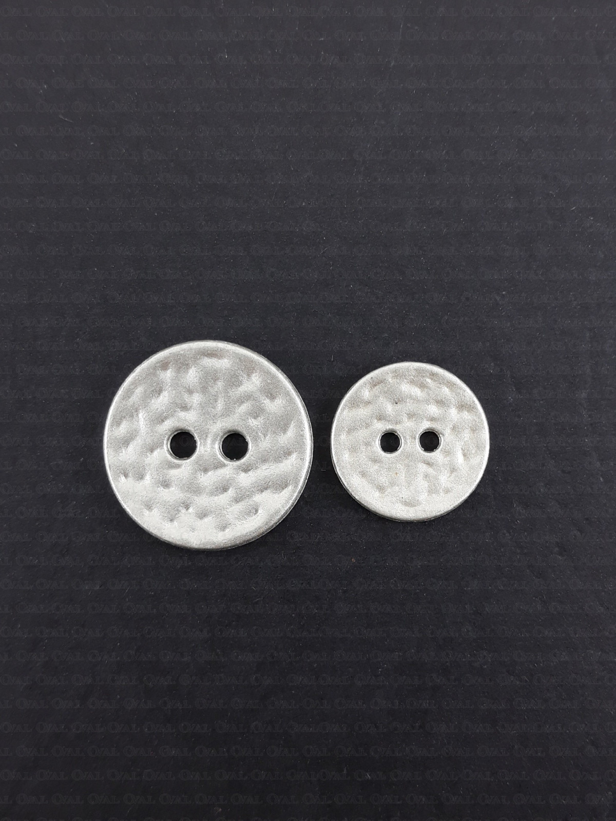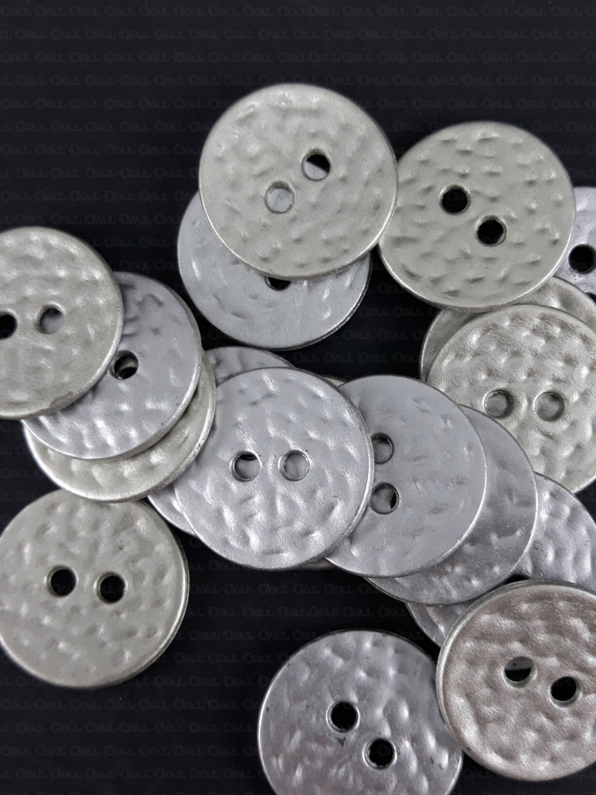 Metal button in a matte light silver finish.