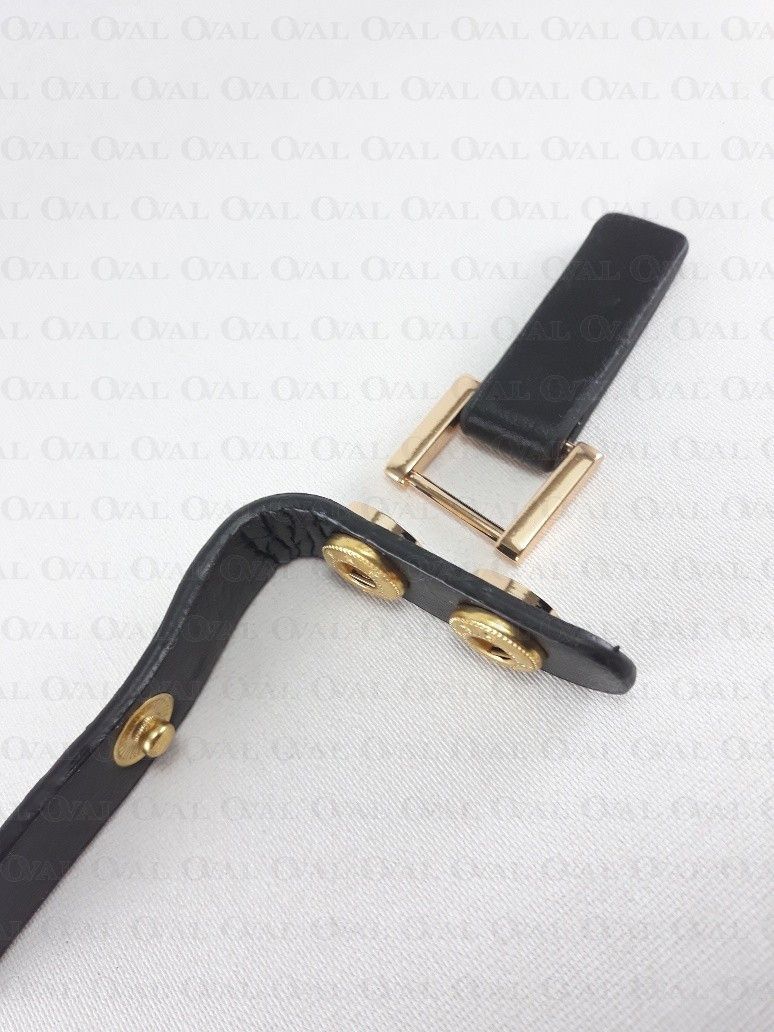 Colour: black leather, metal elements in dark nickel or gold