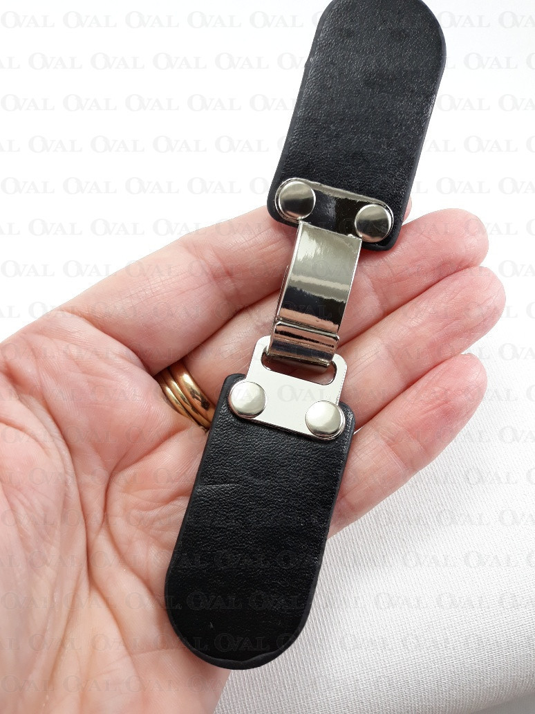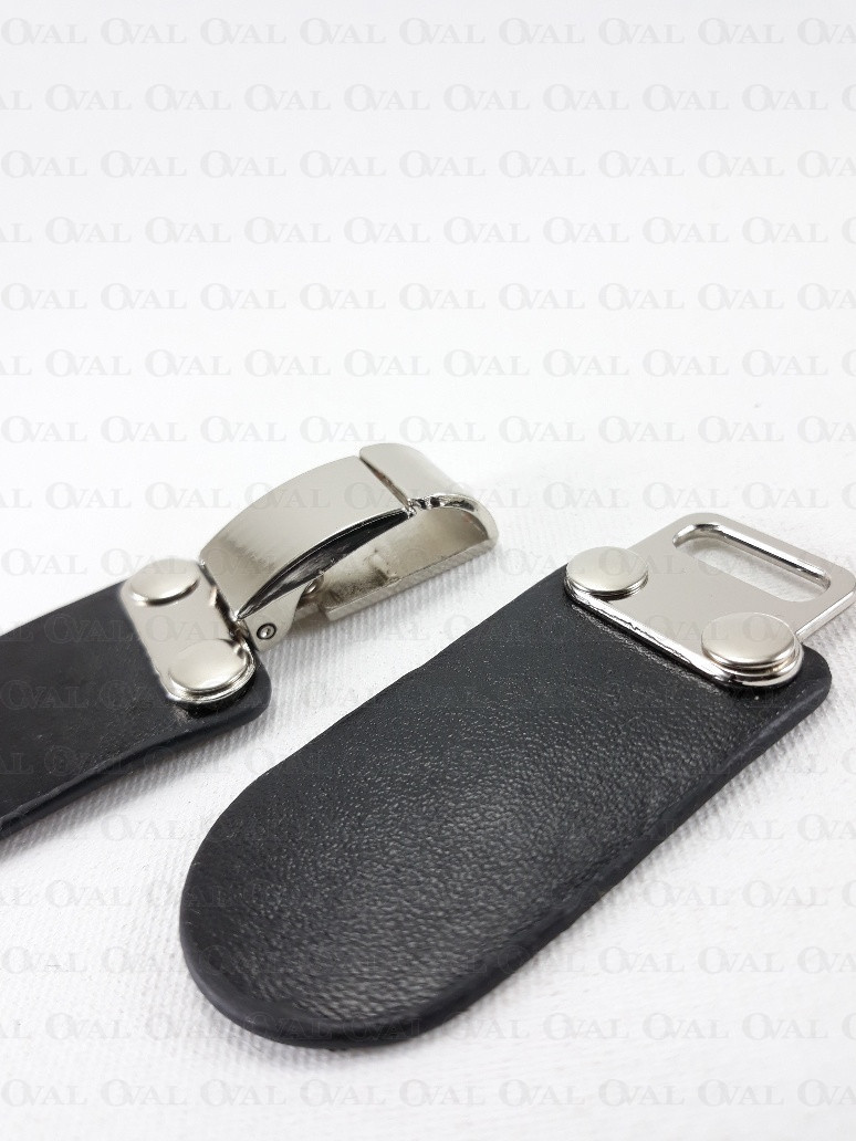 Eco-leather clasp with metal elements in silver colour