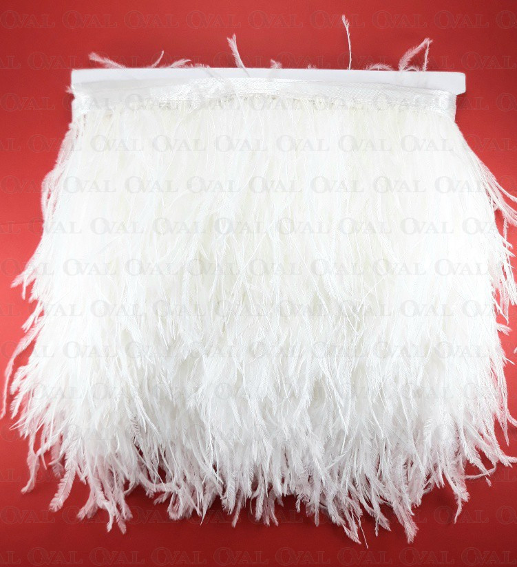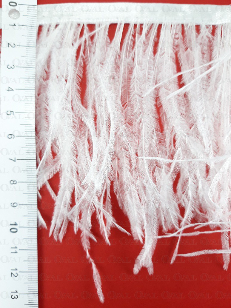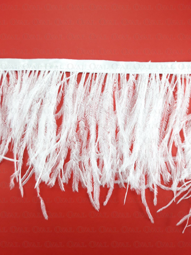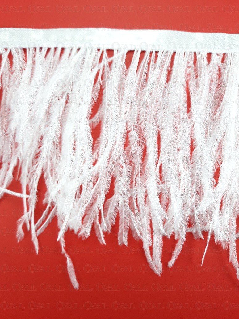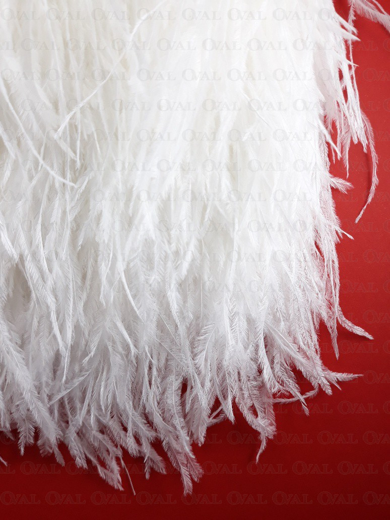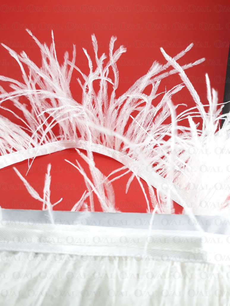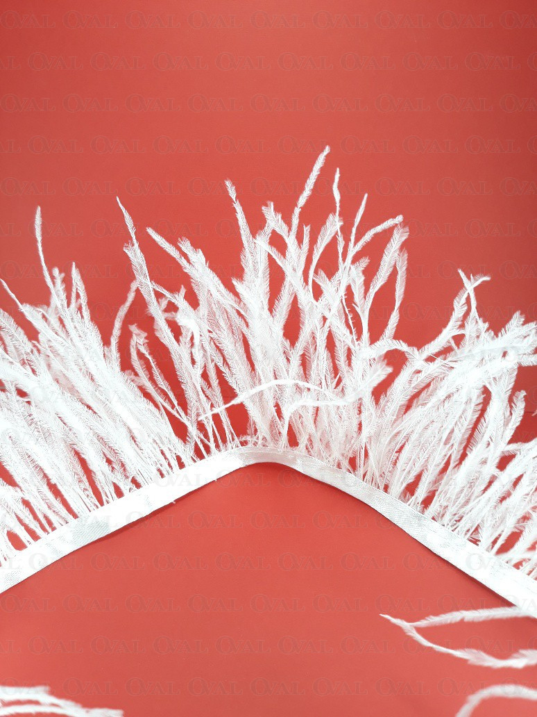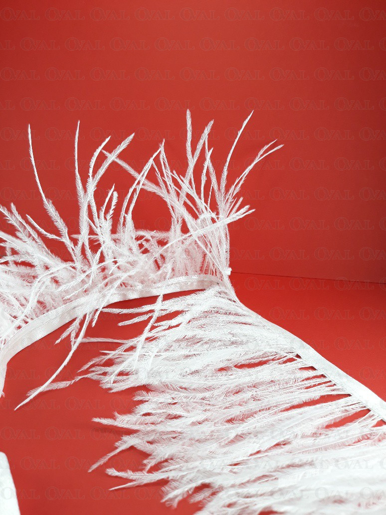 Ostrich feather trims are widely used in fashion, both in the haute couture industry and in mass clothing production. Ostrich feathers add elegance and luxury, giving garments a unique look and style. They can be placed on sleeves, collars, cuffs, or used as a row of decorative feathers on a skirt or dress. Ostrich feather trim can also be used to decorate handbags, hats or shoes.
