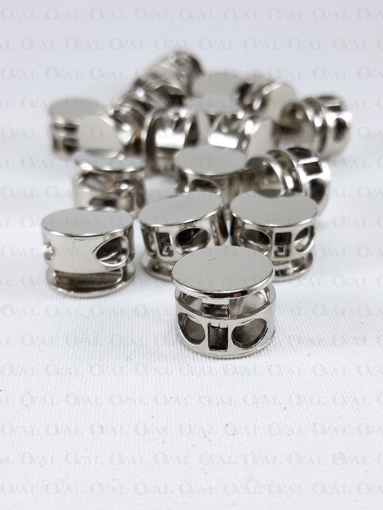 Size: diameter 14 mm, height when open 10 mm, holes for cord max 5 mm