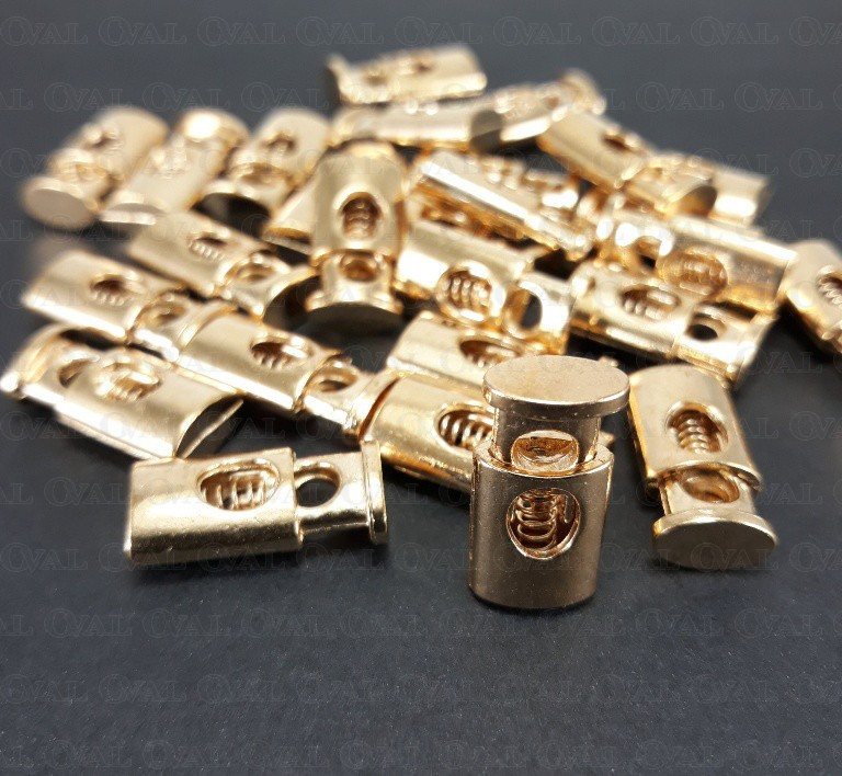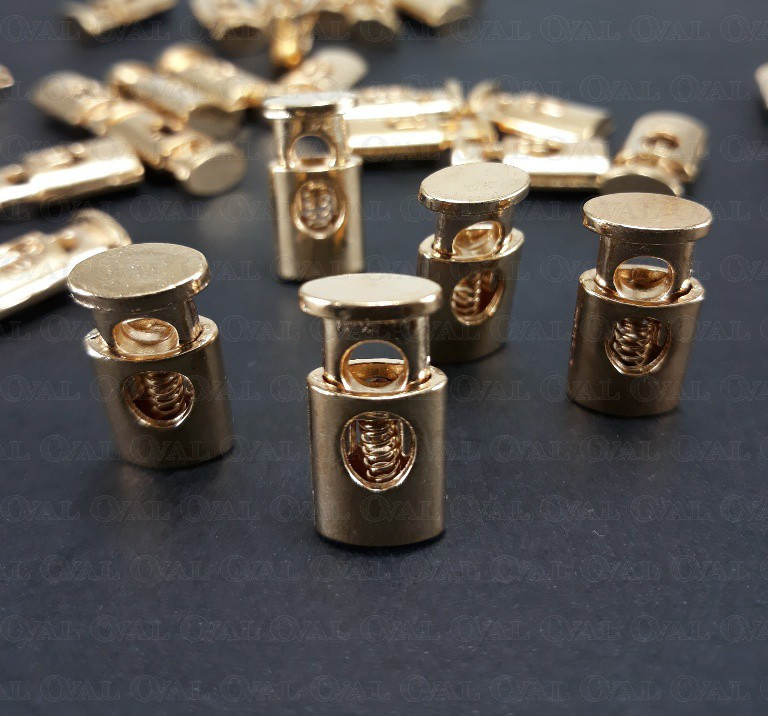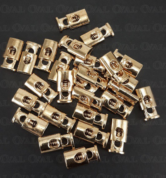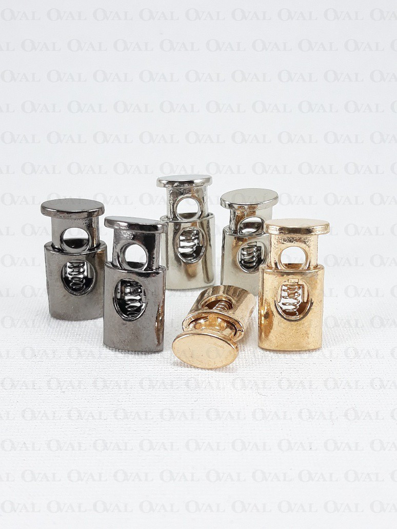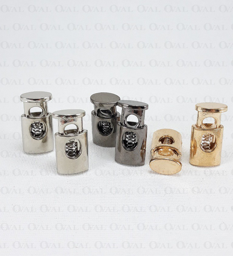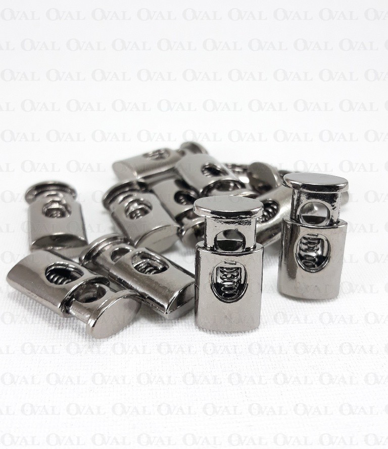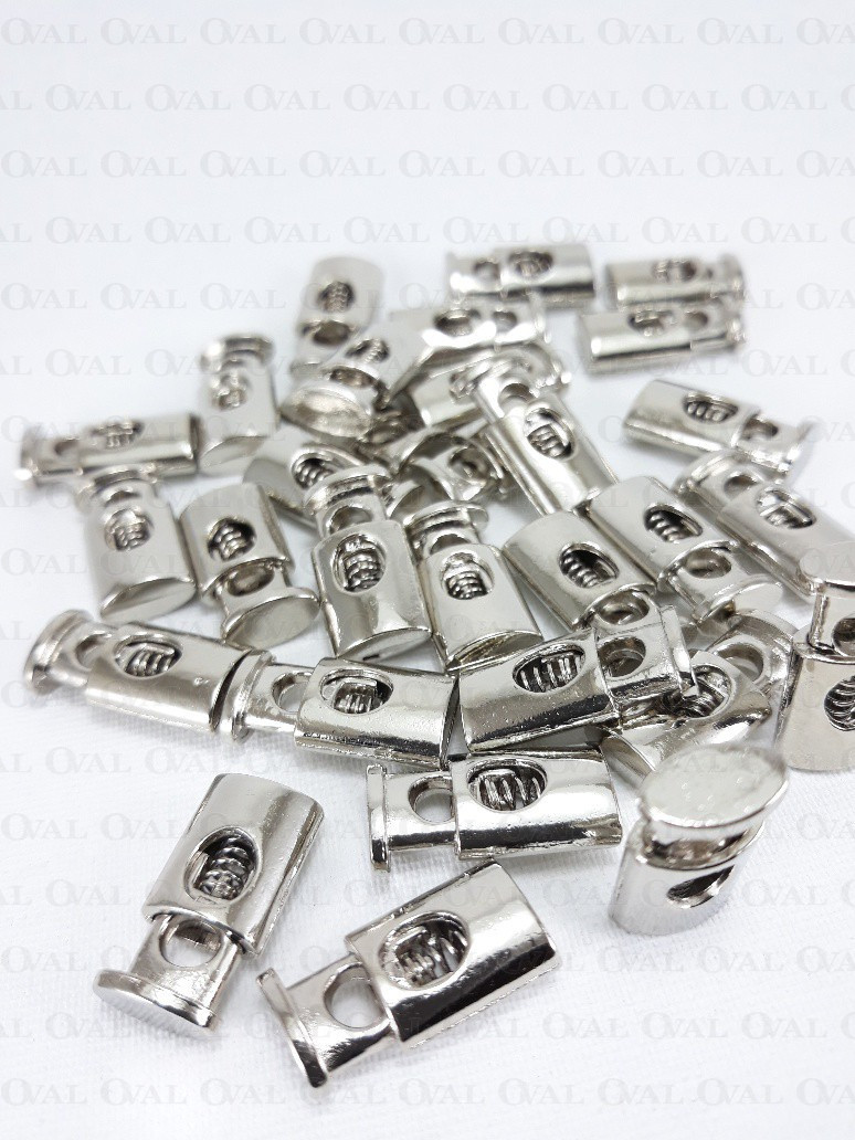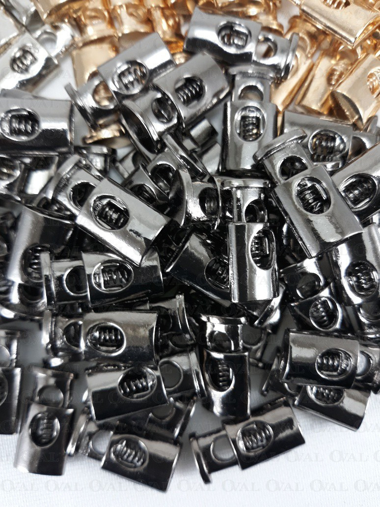 Metal single-hole cord lock.
