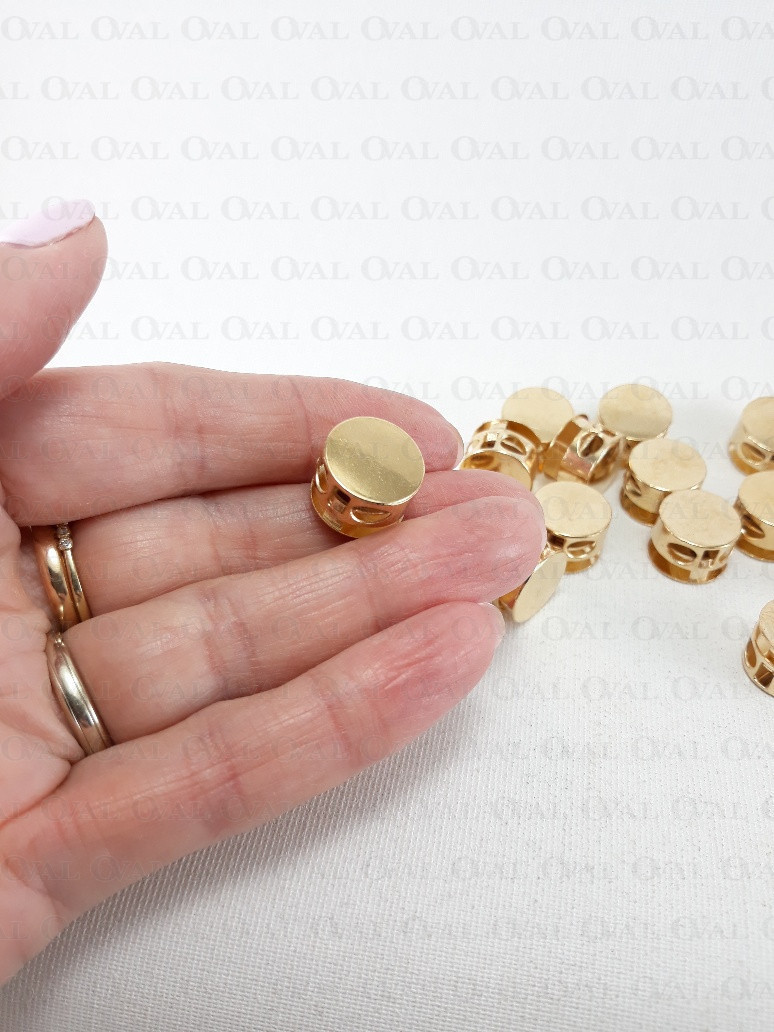 Size: diameter 14 mm, height when open 10 mm, holes for cord max 5 mm