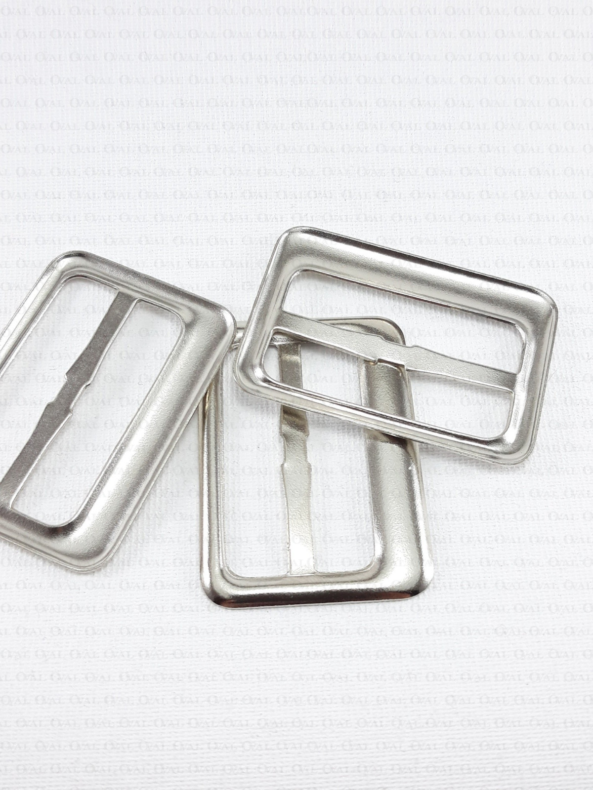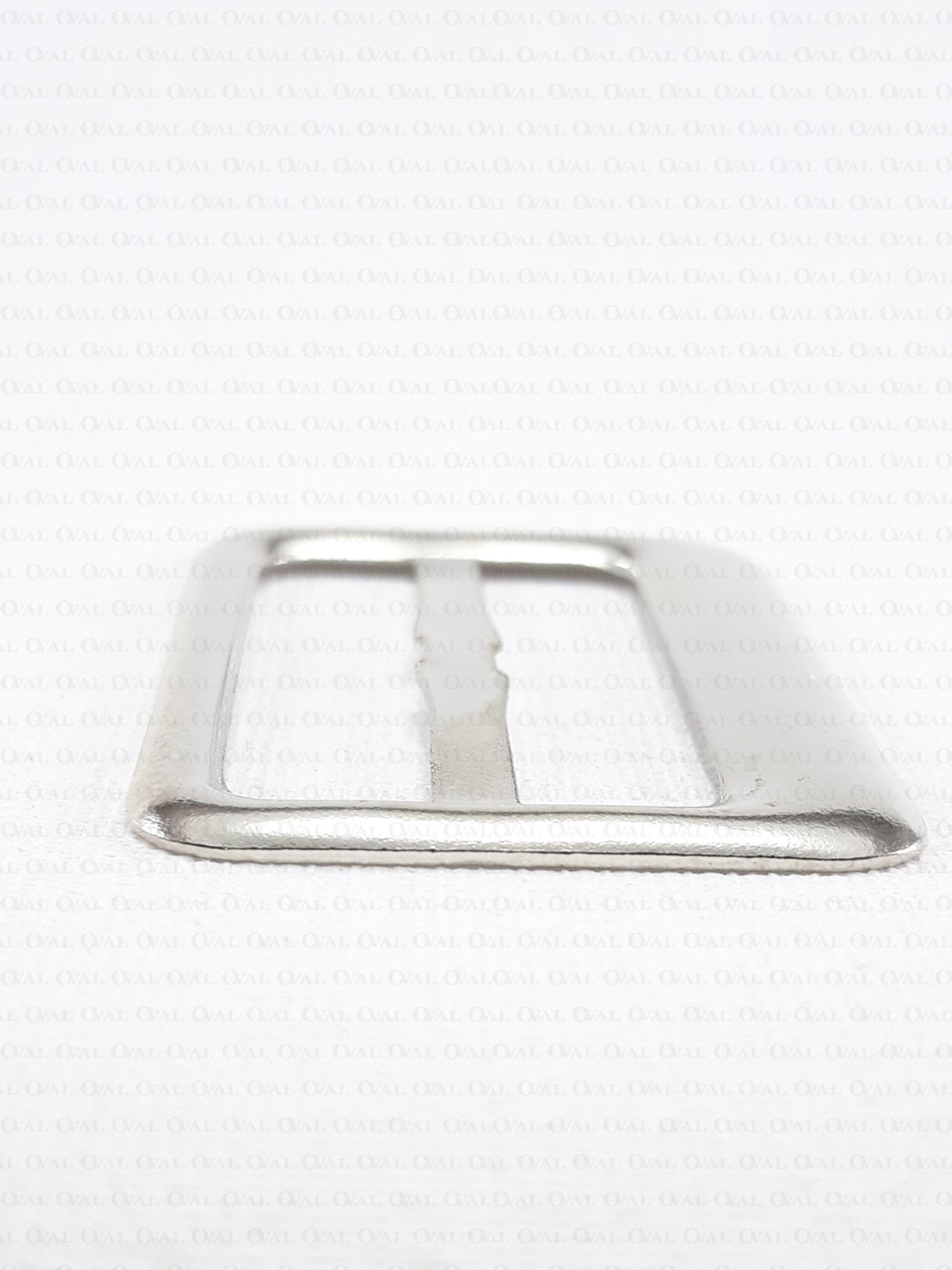Metal buckle without pin, embossed.