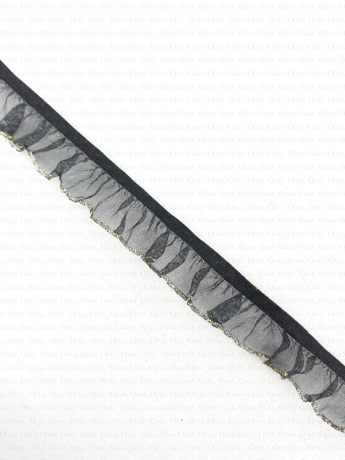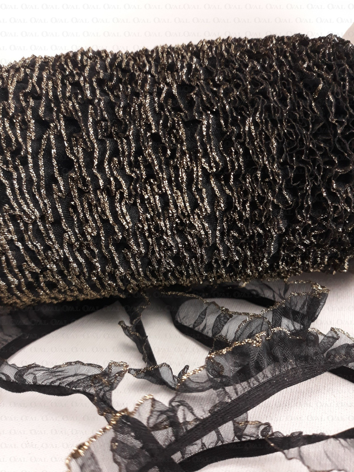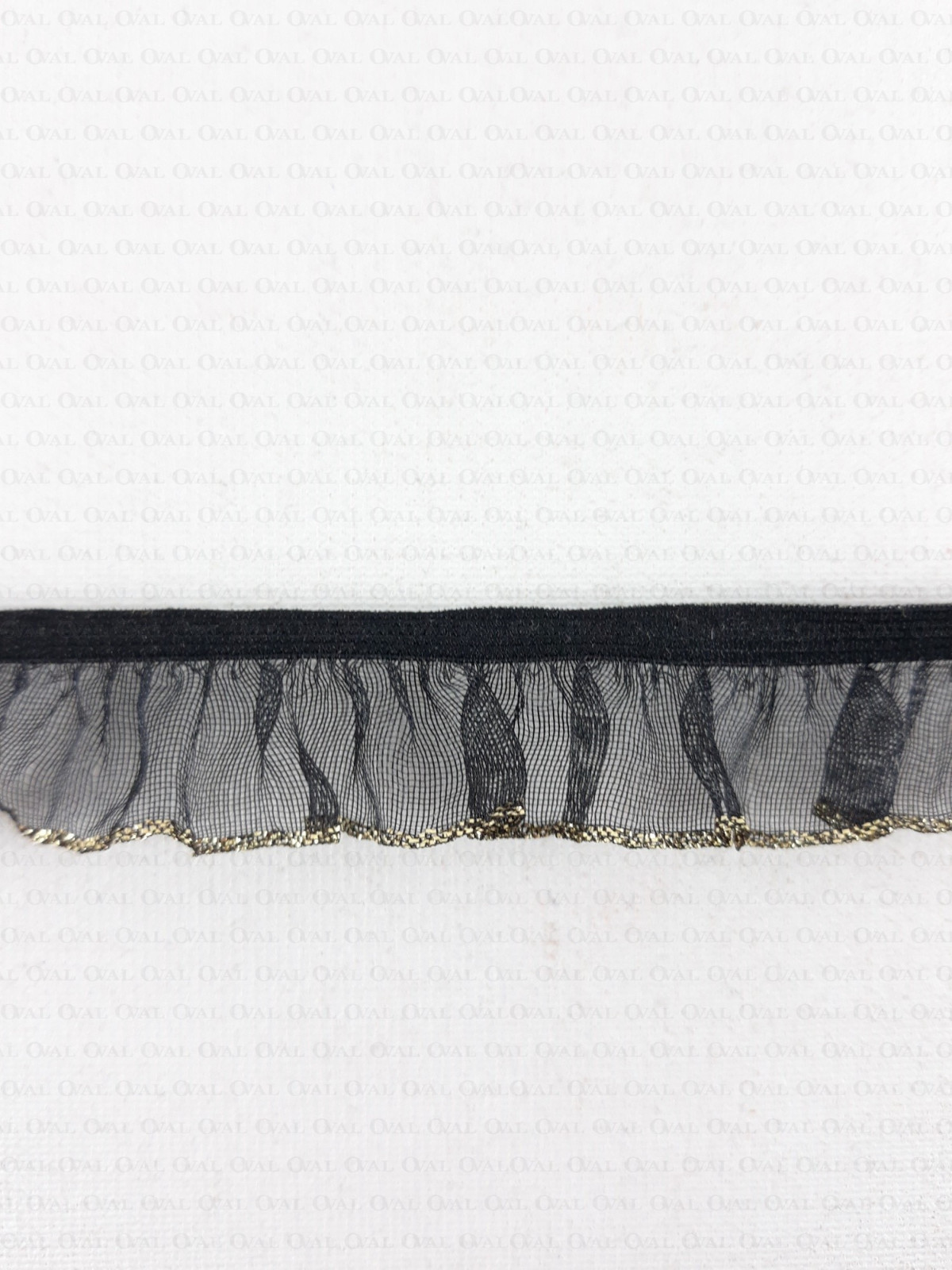 Elastic frill-ruffle with elastic, black with a delicate gold edge