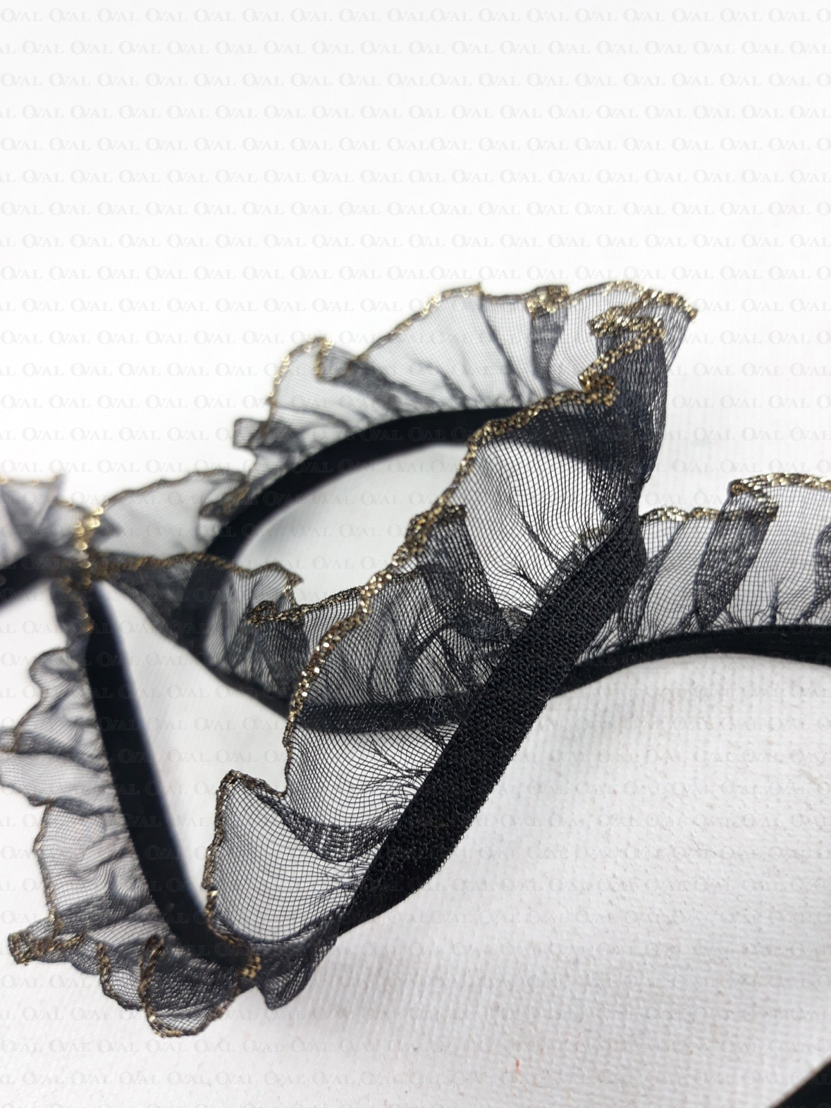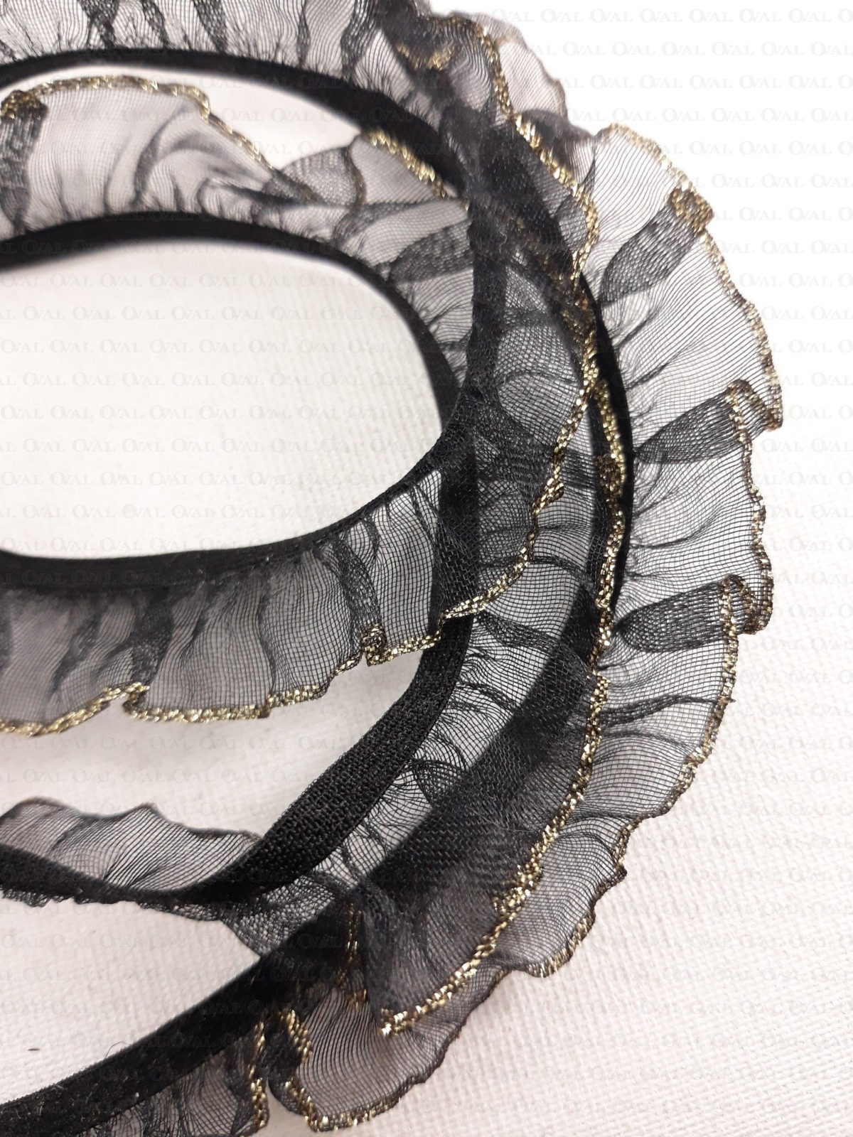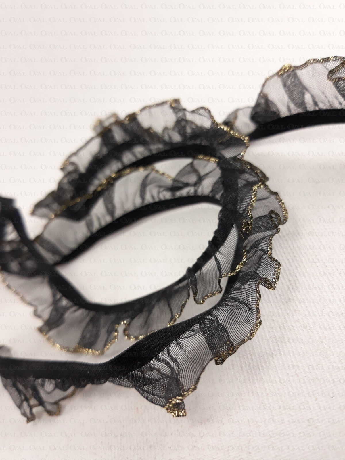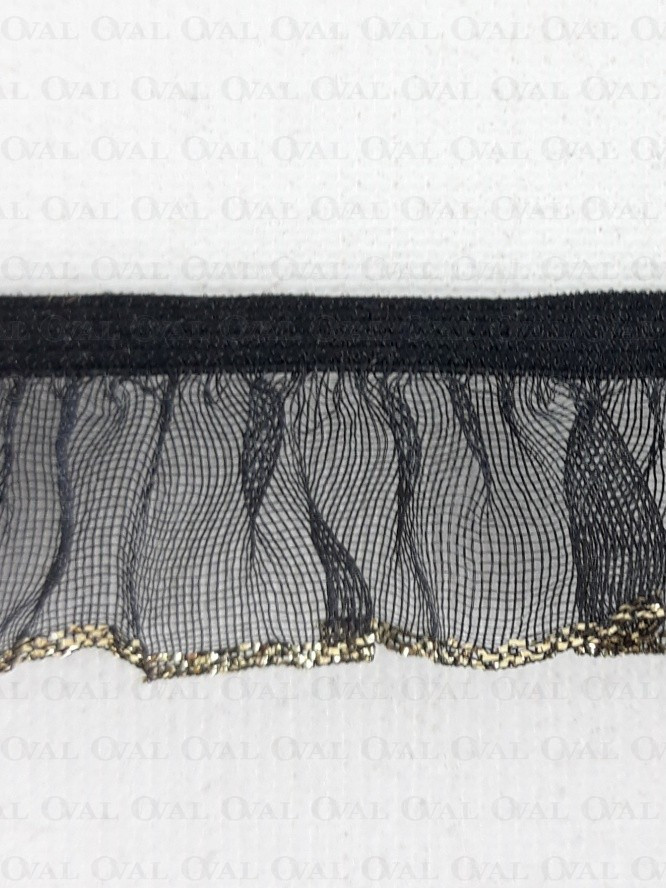 Elastic frill-ruffle with elastic, black with a delicate gold edge