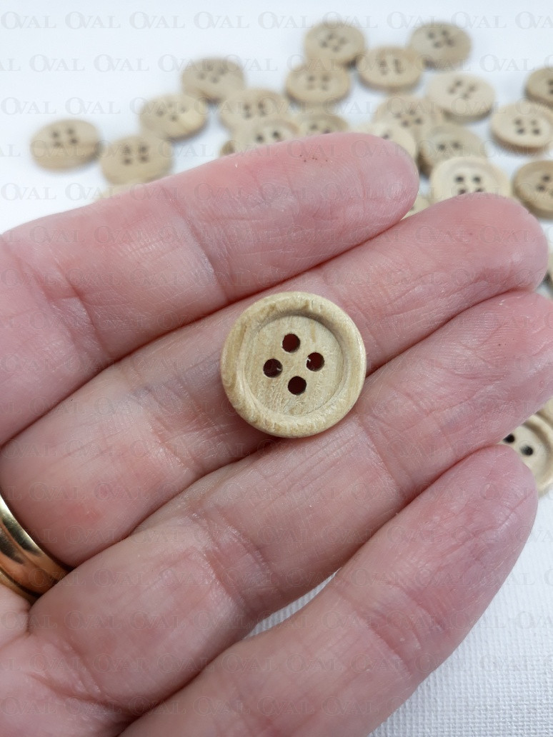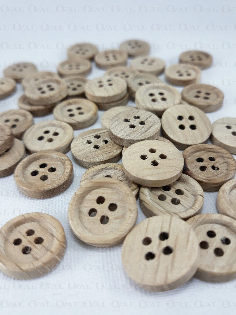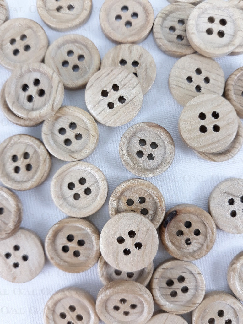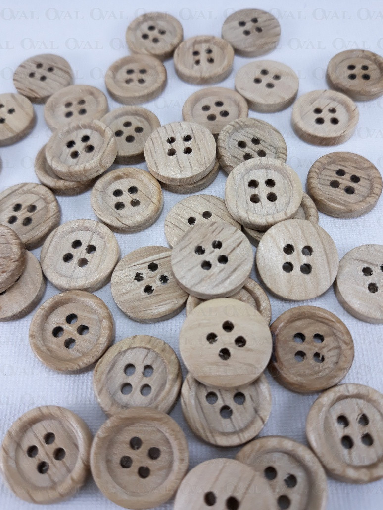 Wooden four-hole buttons.