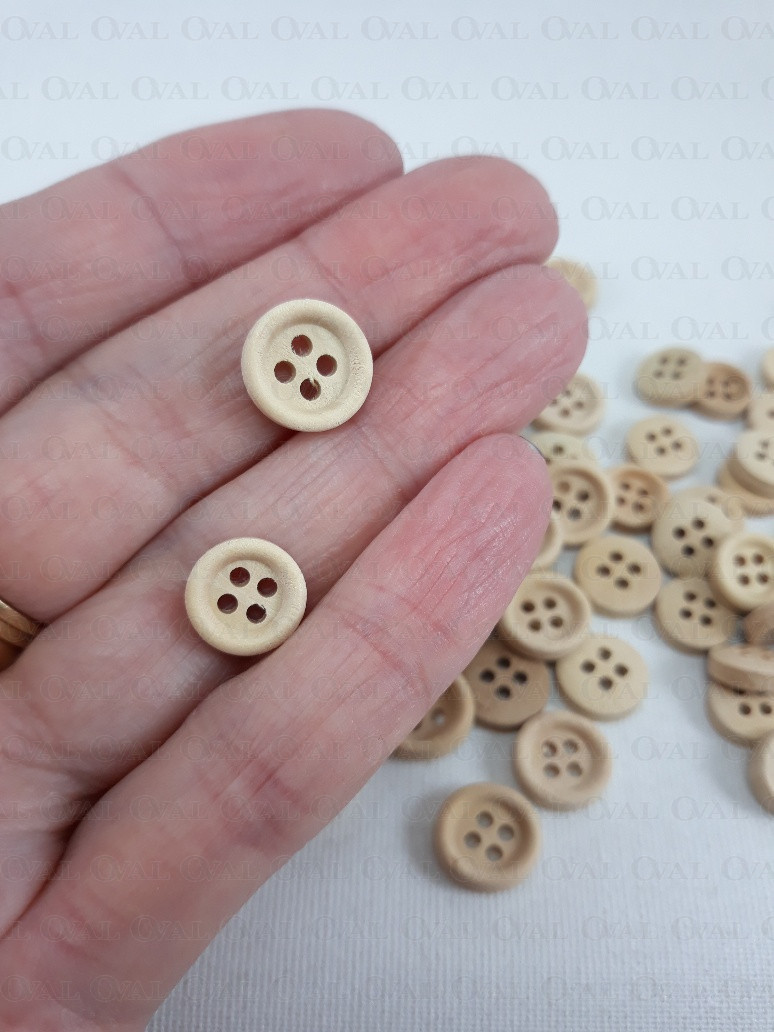 Wooden four-hole buttons.