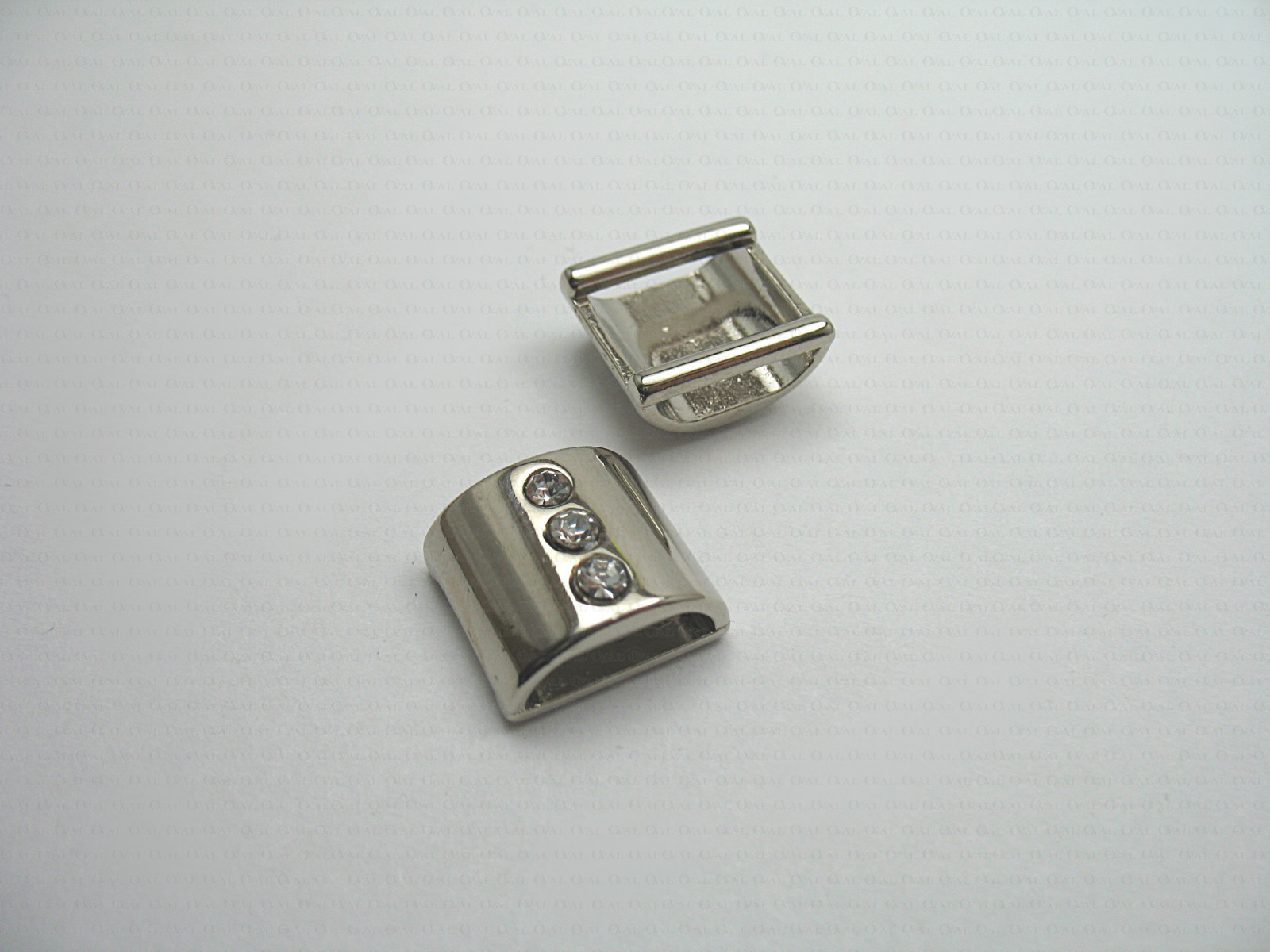 Metal, silver eyelet with rhinestones.