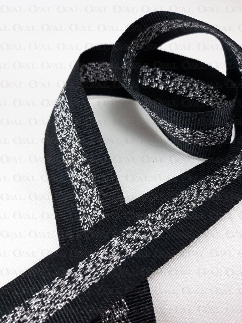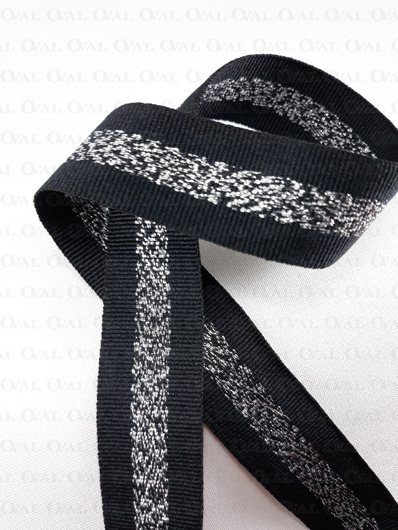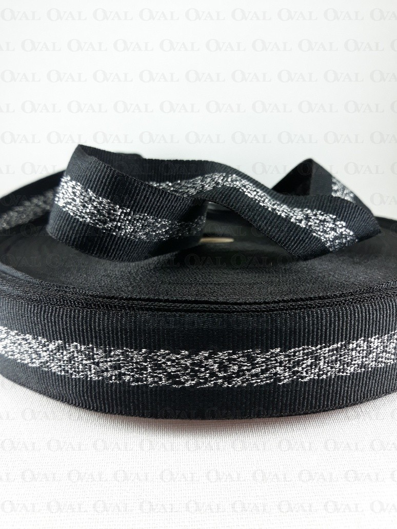 Grosgrain ribbon in black with a silver stripe in the middle