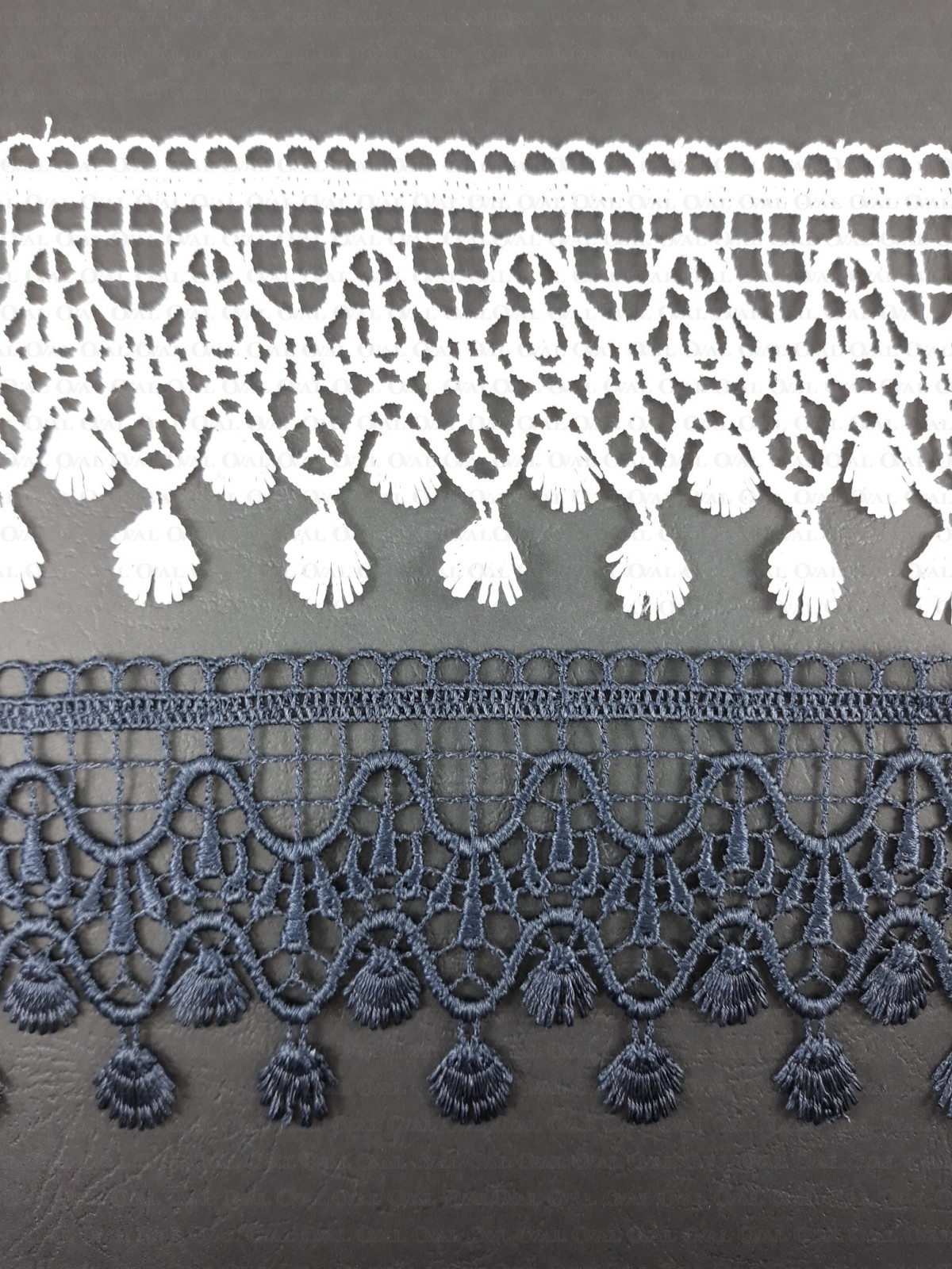 • Guipure lace with fringes – white, ecru, navy blue 75mm 2270