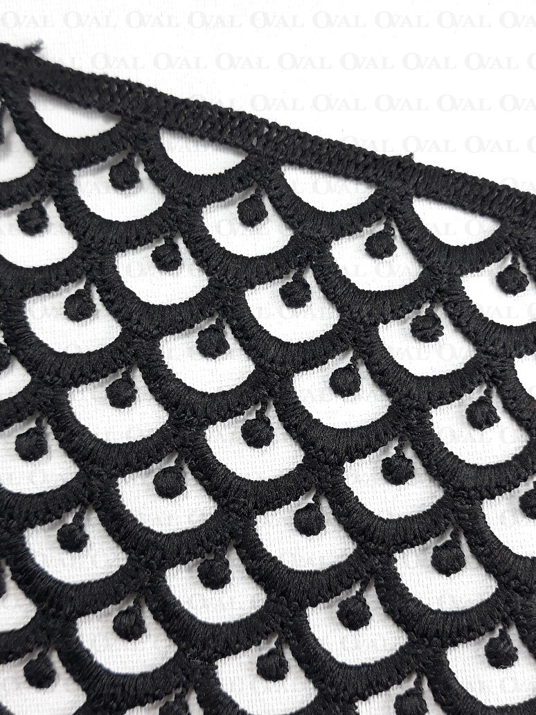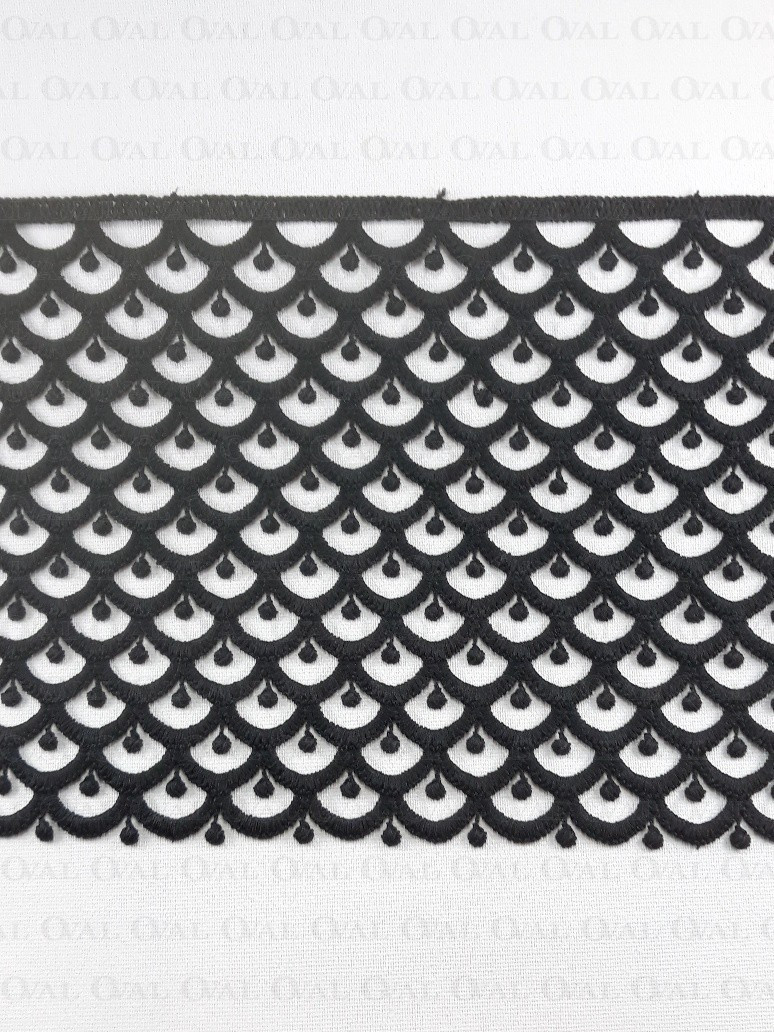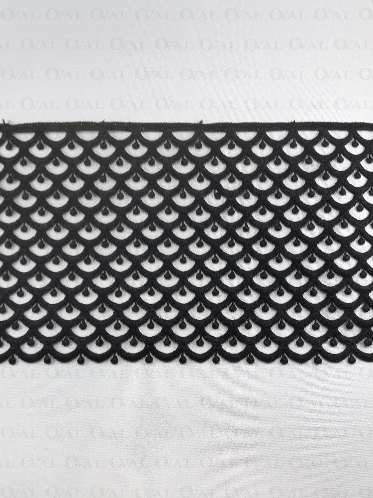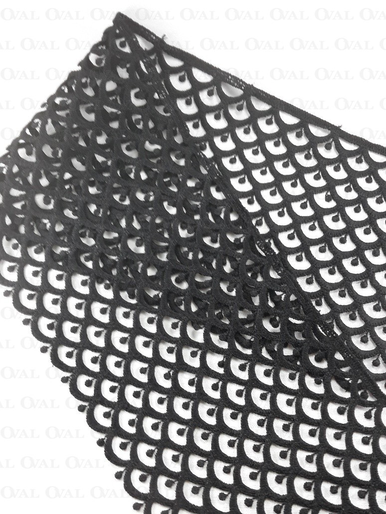 Guipure lace with a fish scale pattern.