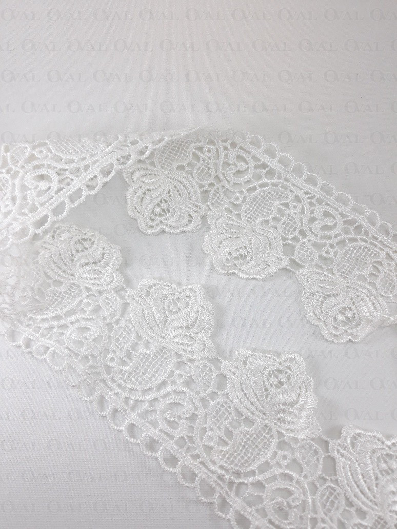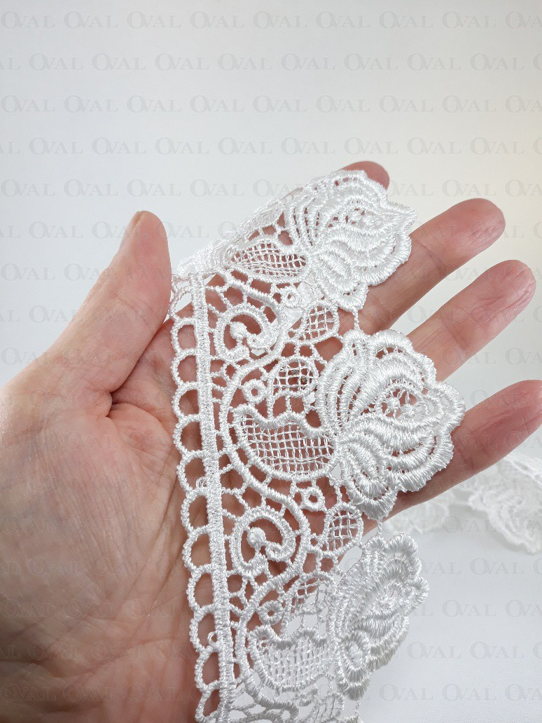 Guipure lace, openwork, soft and delicate.