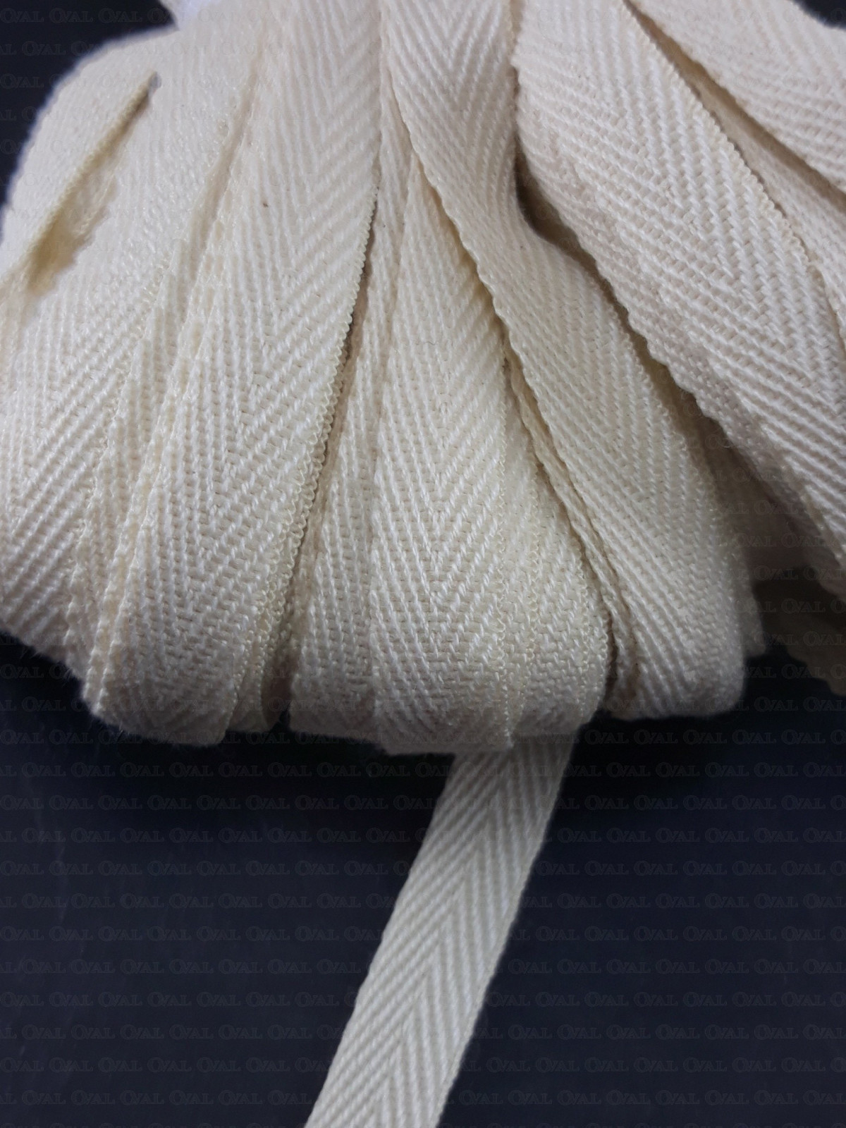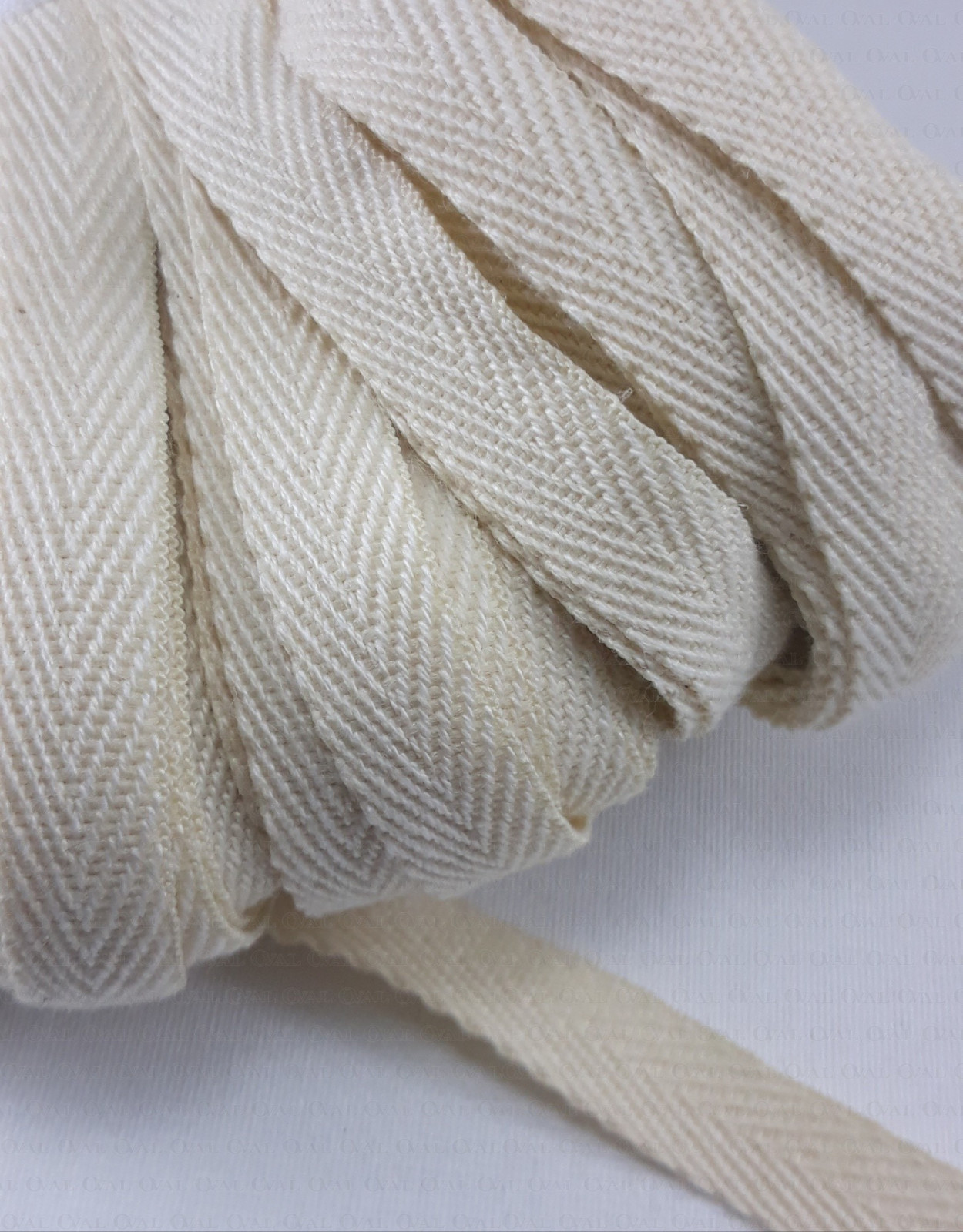 Soft, delicate yet very strong cotton tape in a herringbone weave.