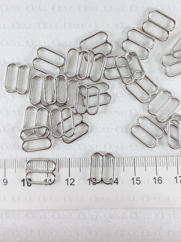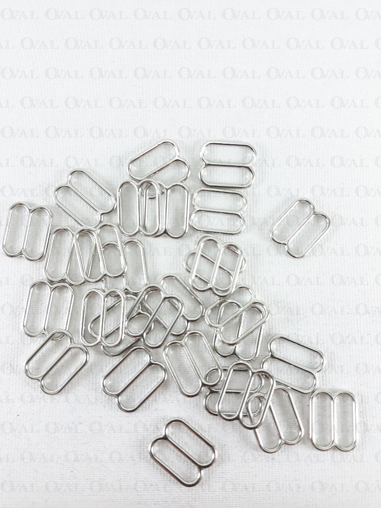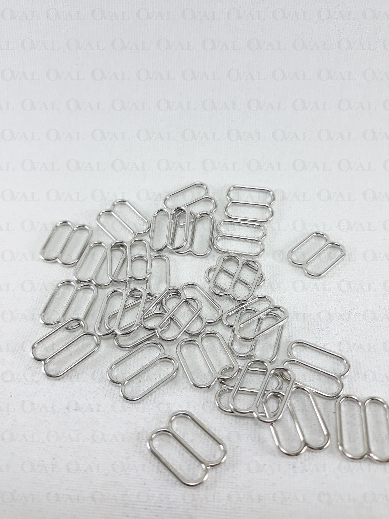 Metal regulator for bra straps in silver colour