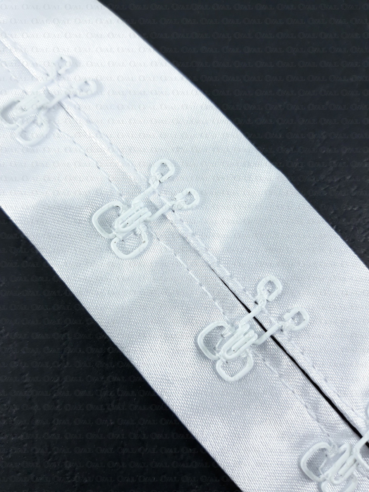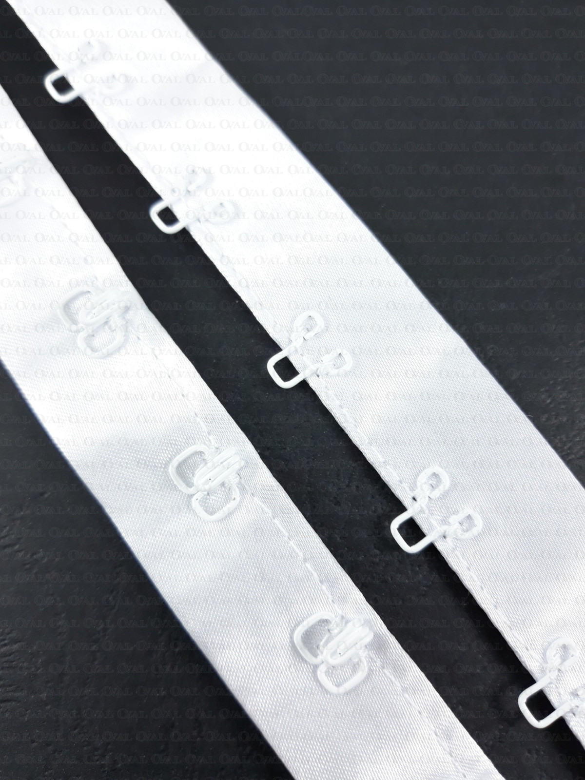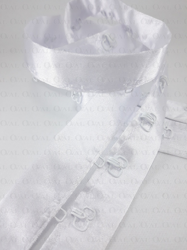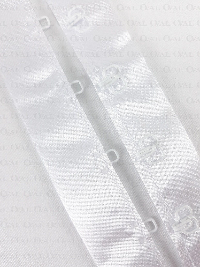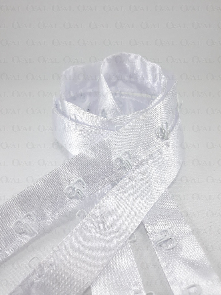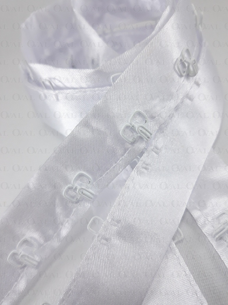 White hooks and eyes on satin tape 1m 2233