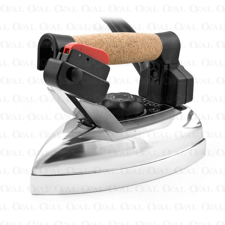 Monolithic soleplate with built-in 800W heater [230V, 50Hz], durable cork handle construction, bimetallic temperature controller, thermal protection, anti-burn guard, weight 1.7 kg.