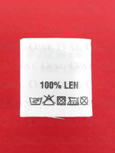 Clothing label containing the fibre composition and the washing instructions for the sewn product.