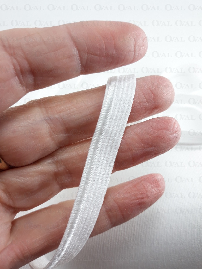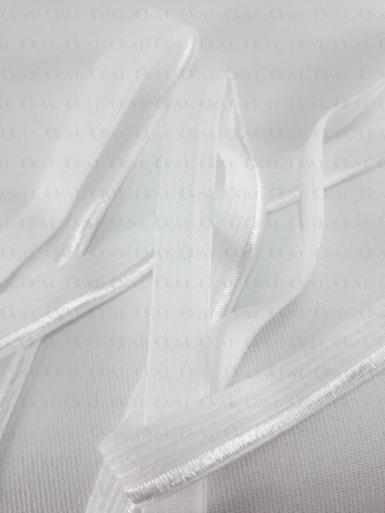 White lingerie elastic, soft and delicate with a shimmering edge.