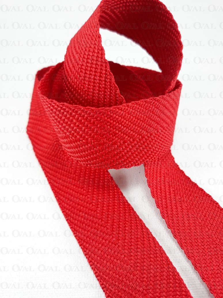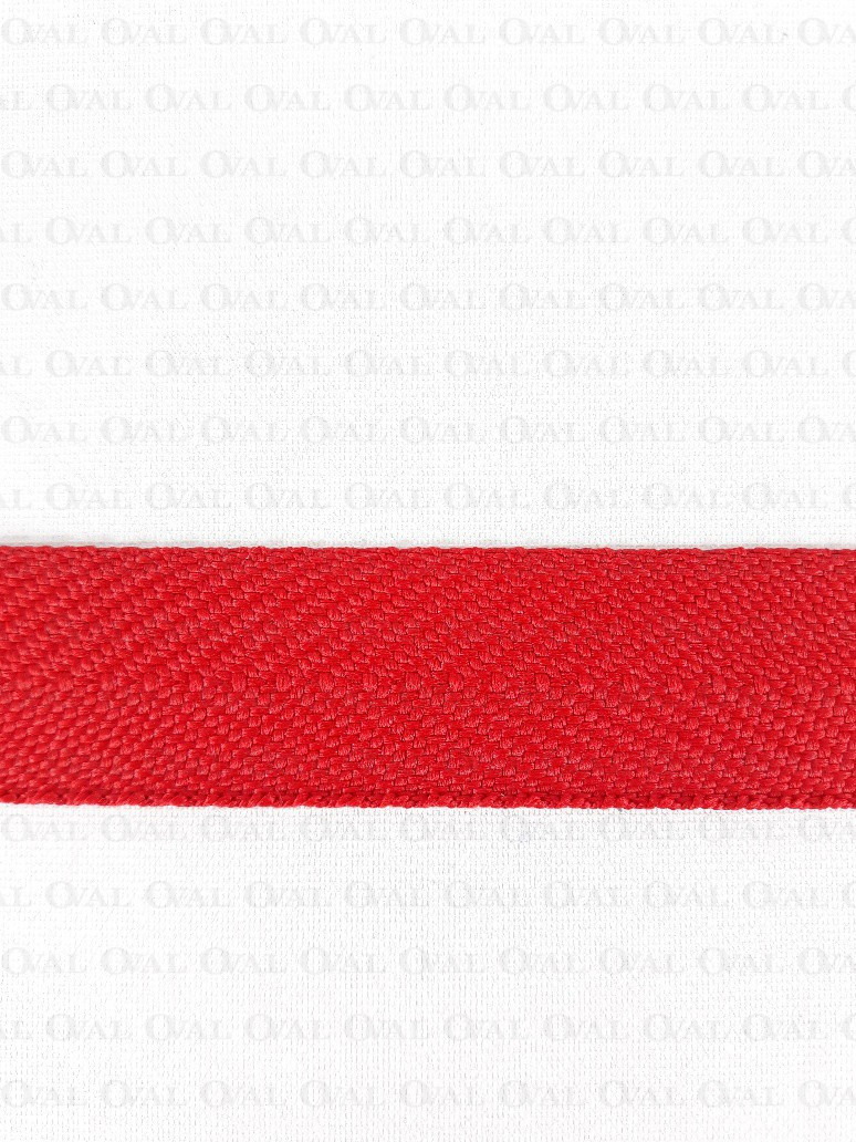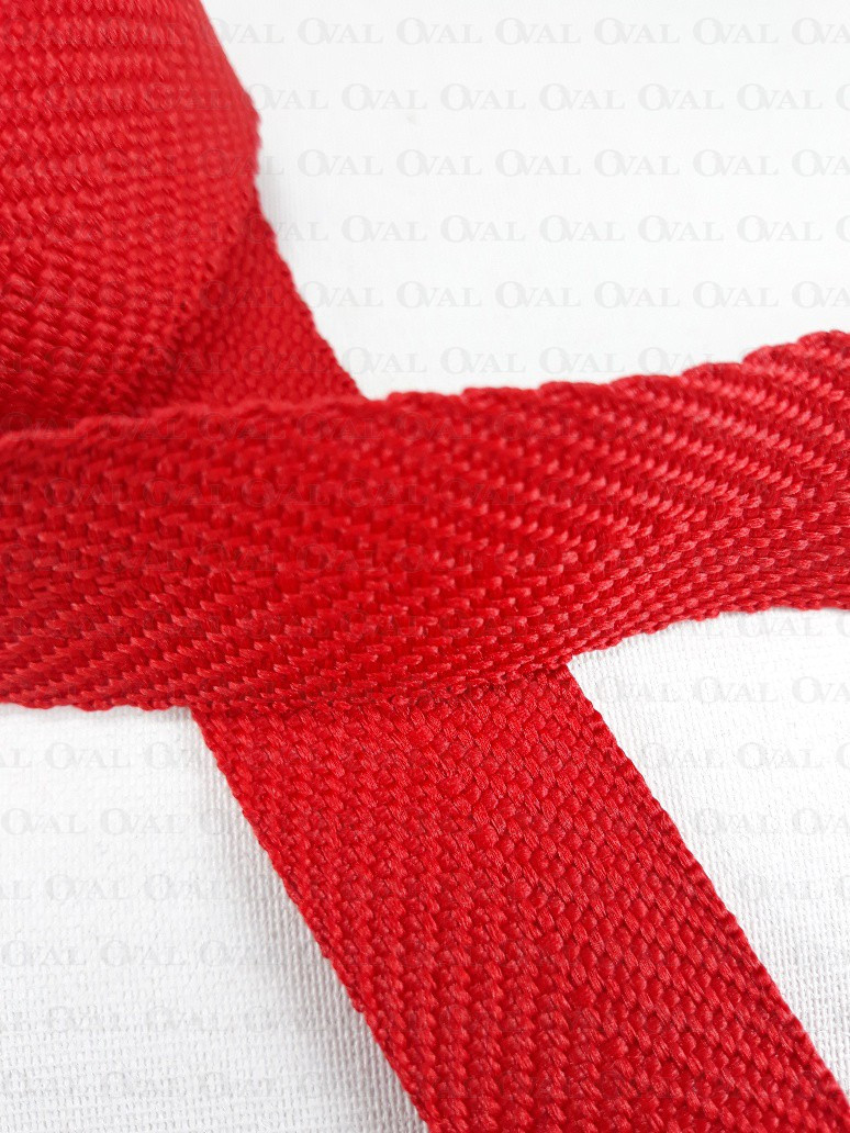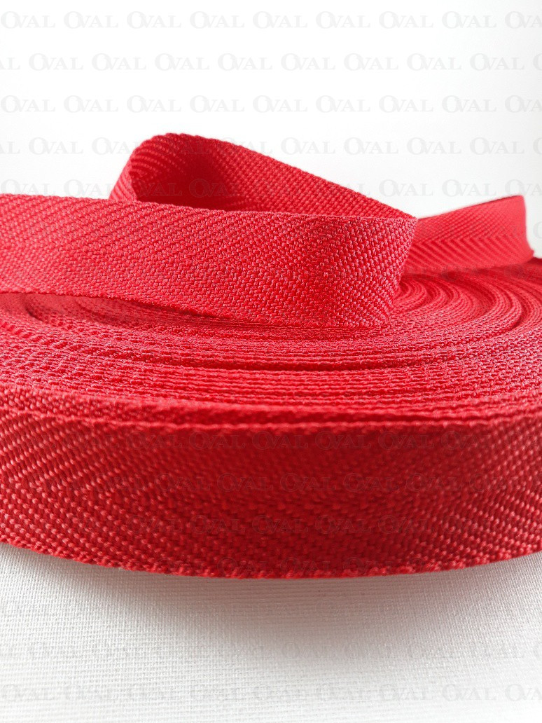 Red webbing with a herringbone weave.