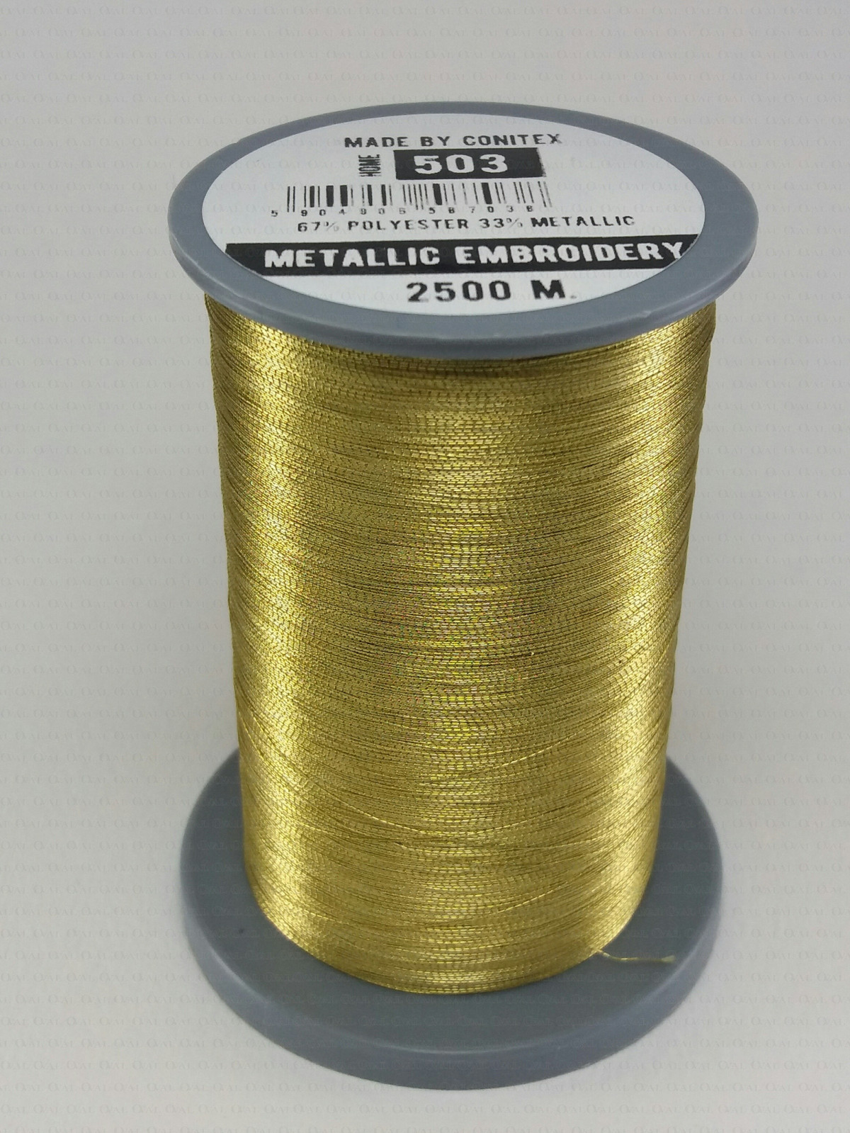 Thread for hand or machine sewing, length 2500 m, composition 67% polyester 33% metallic