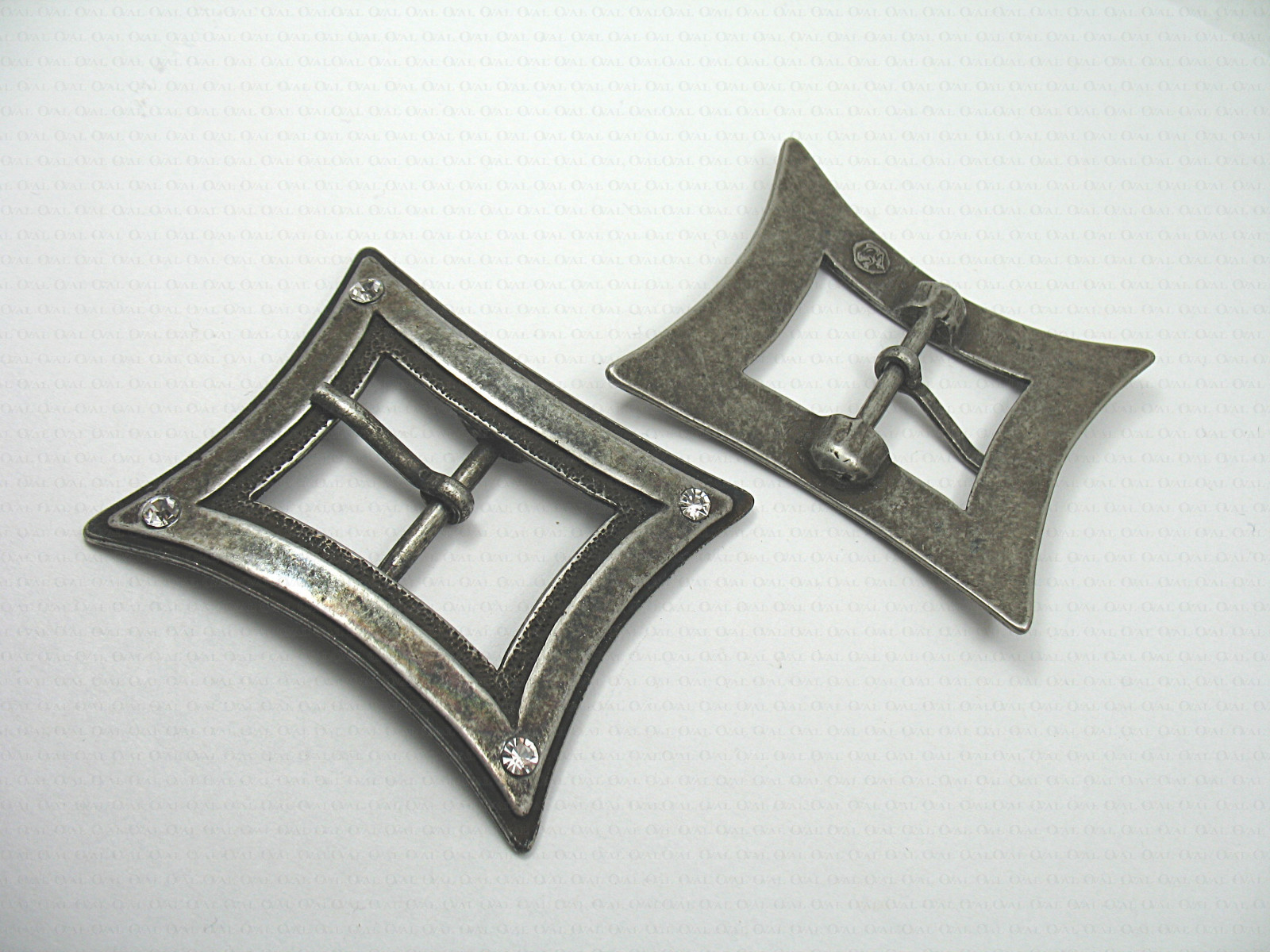 Decorative buckle, metal with rhinestones.