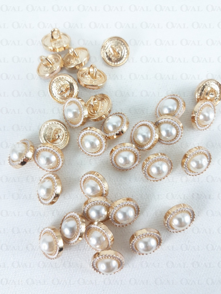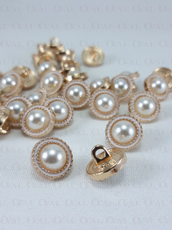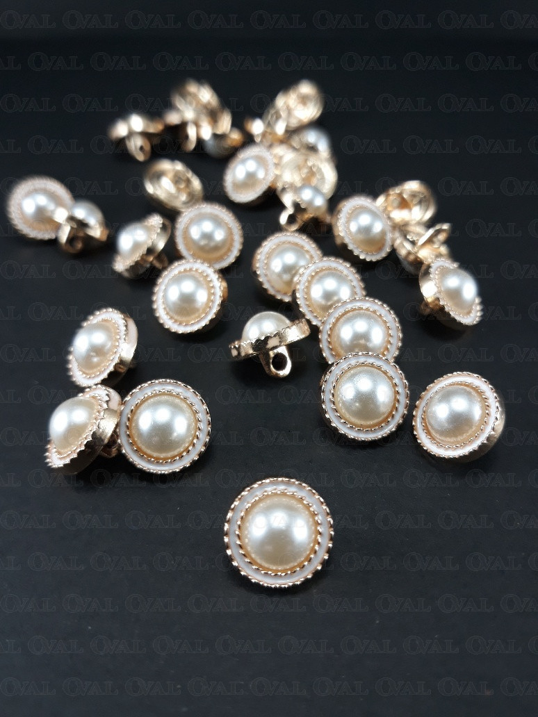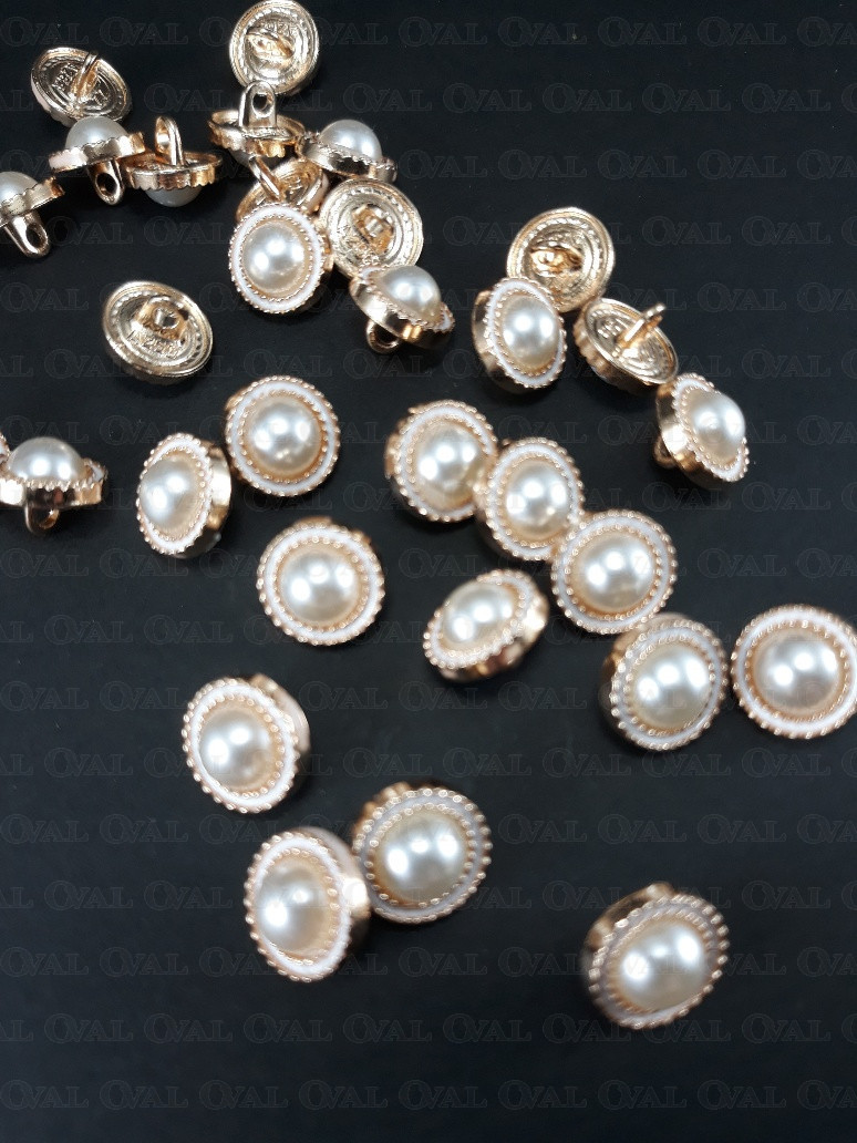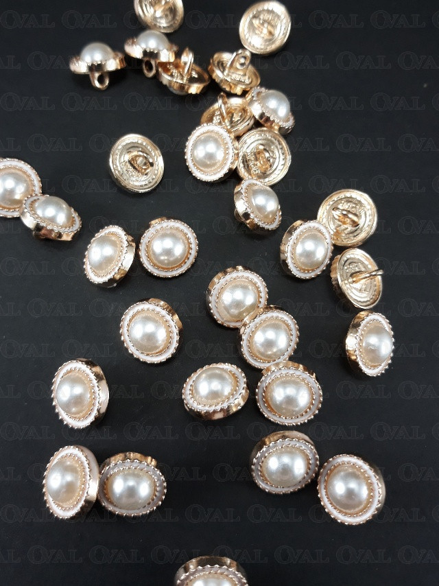 Metal button with a pearly centre.