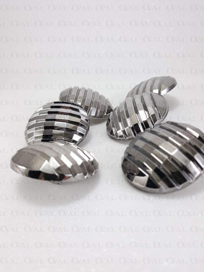 Polyester button, metallised, on a shank.