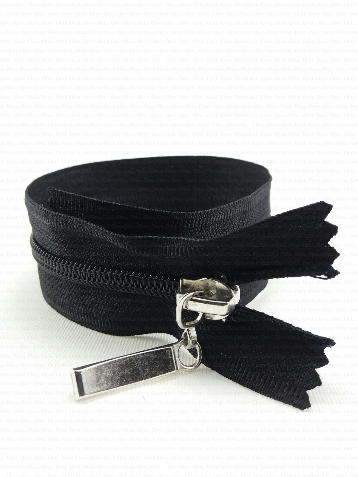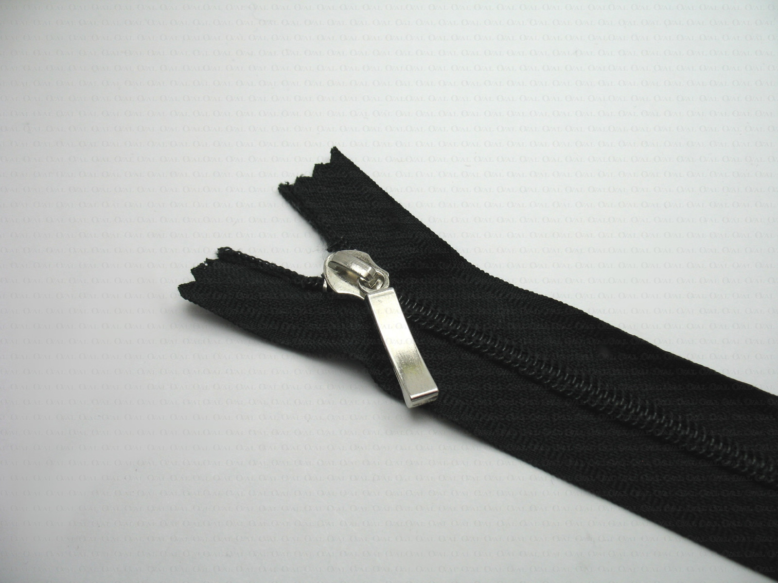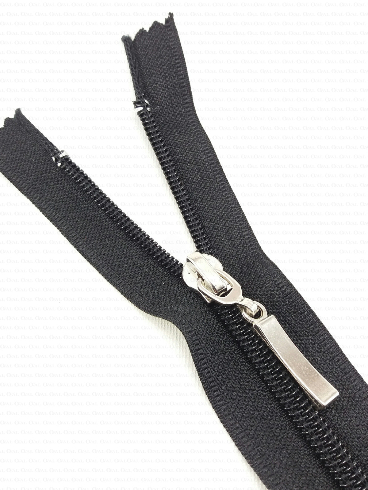 Black zip with silver-coloured metal puller.