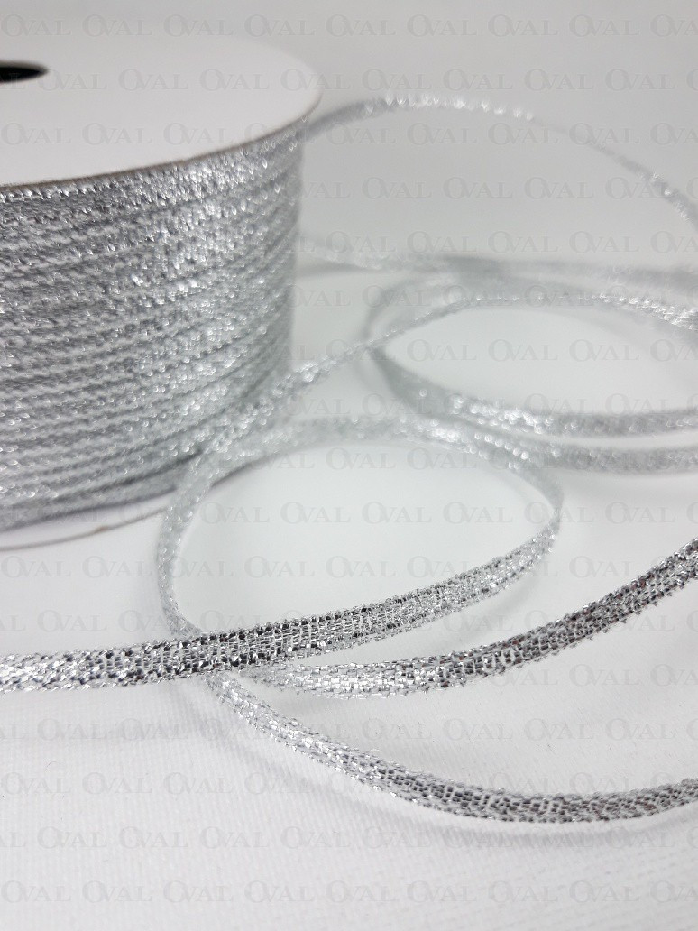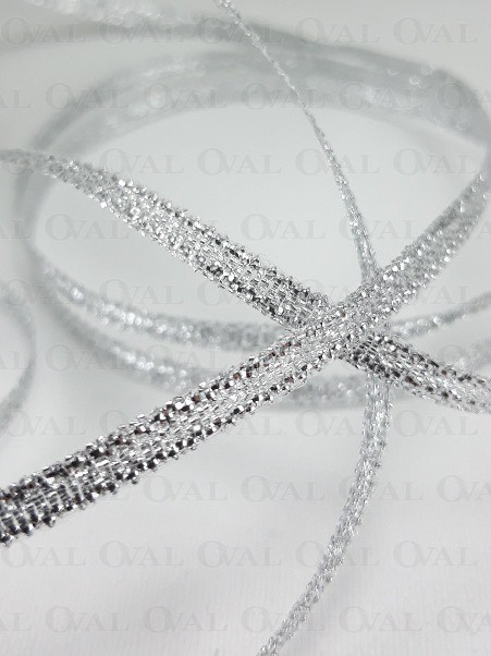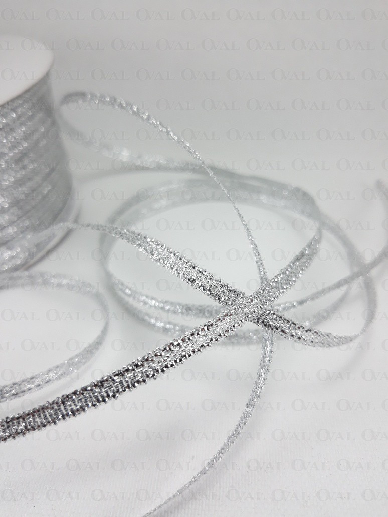 Decorative ribbon in silver colour.