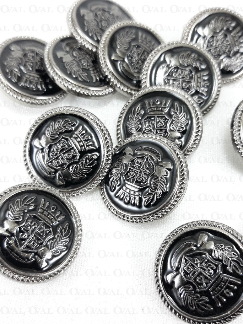Metal buttons with a coat of arms.