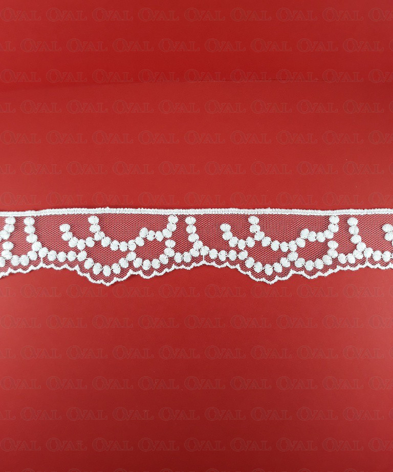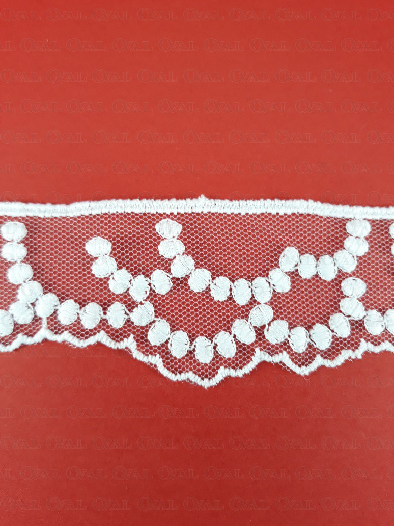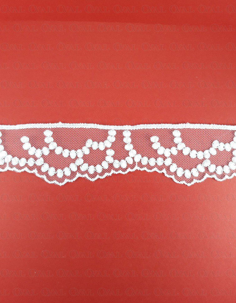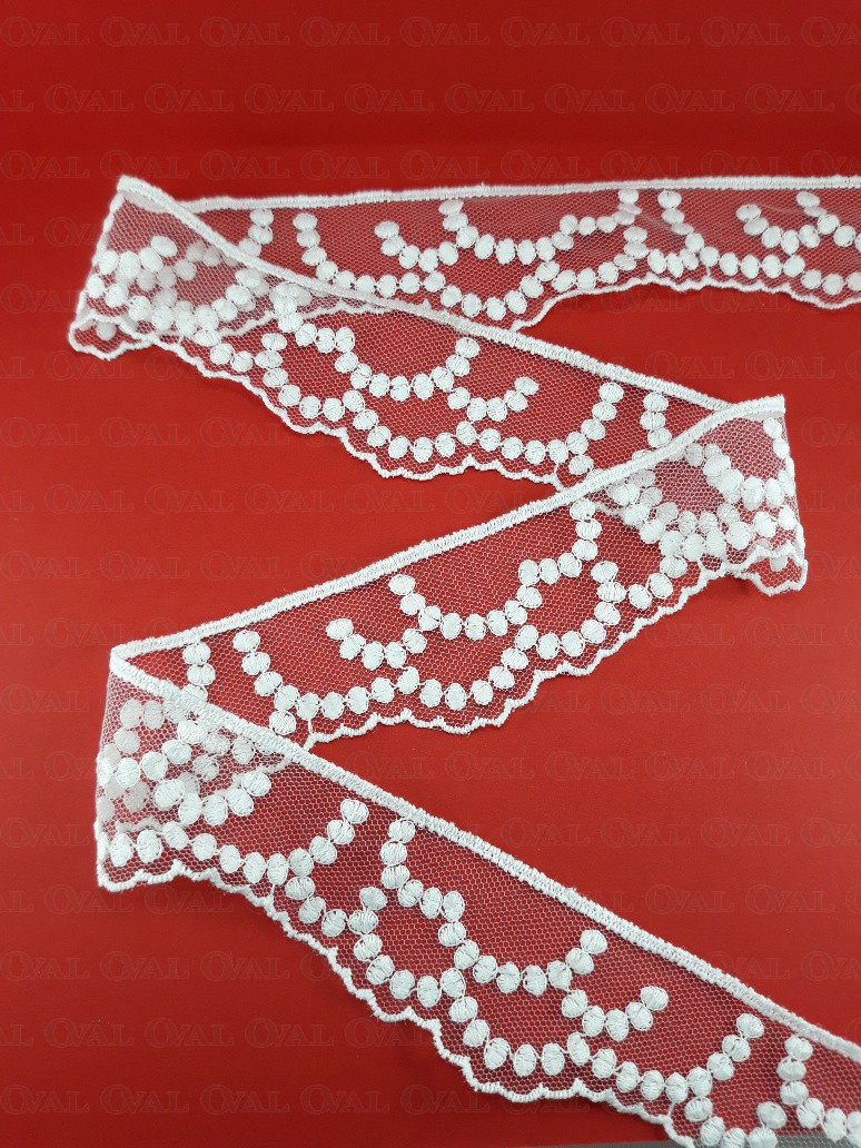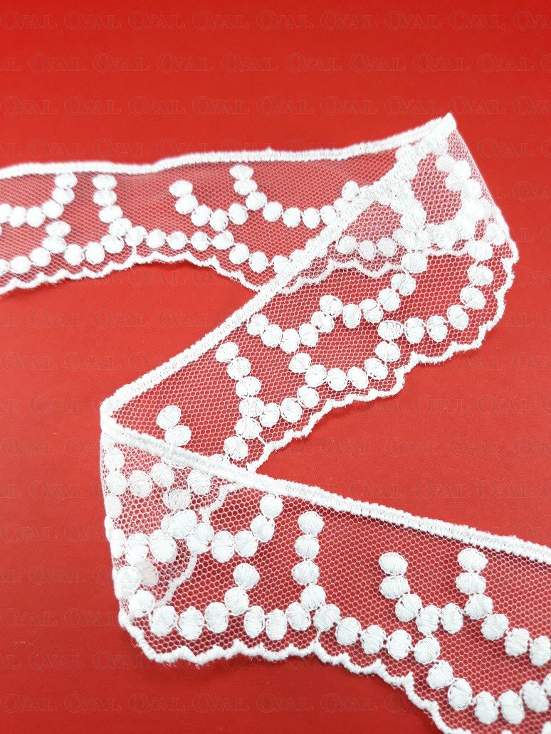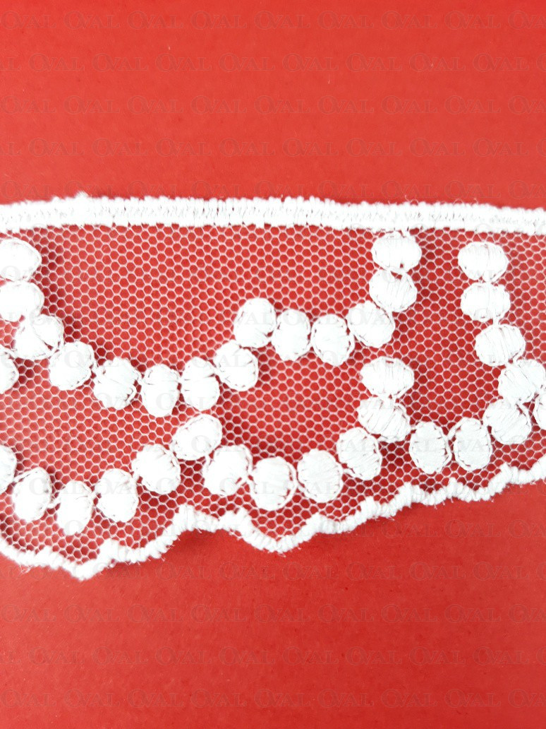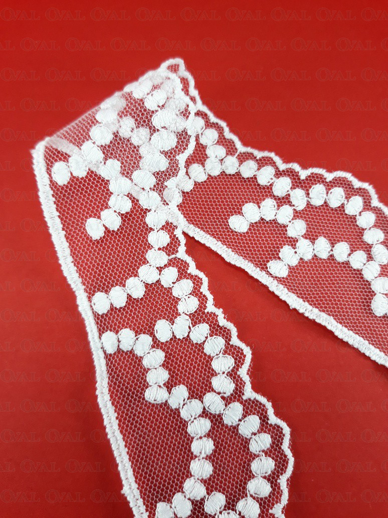 White lace on tulle, delicate and soft.