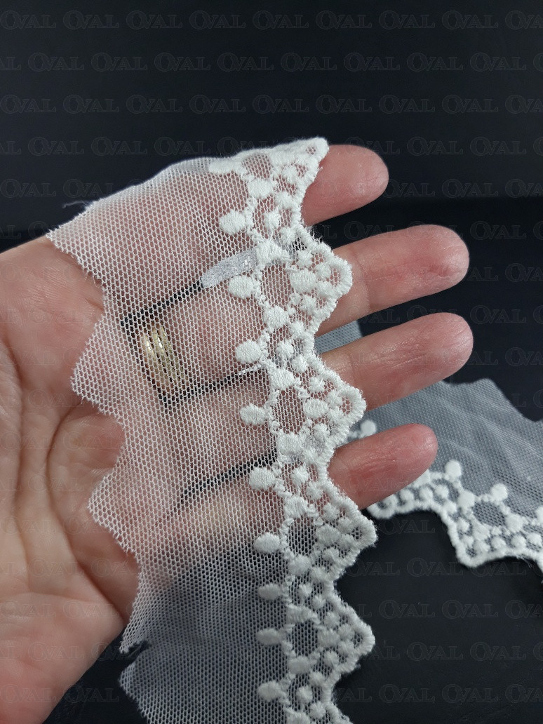 • Lace, embroidery on tulle 60 mm / 15.5 yds, 19.5 yds or 1 yd white 4775