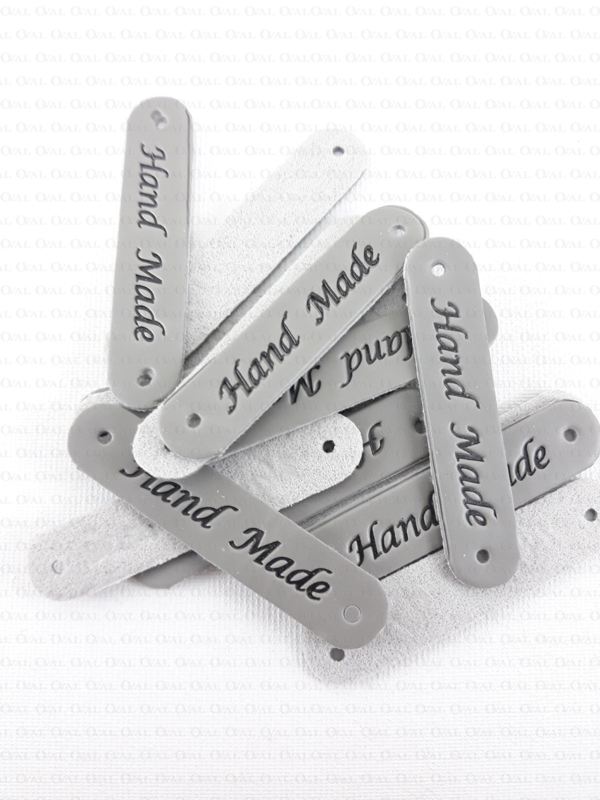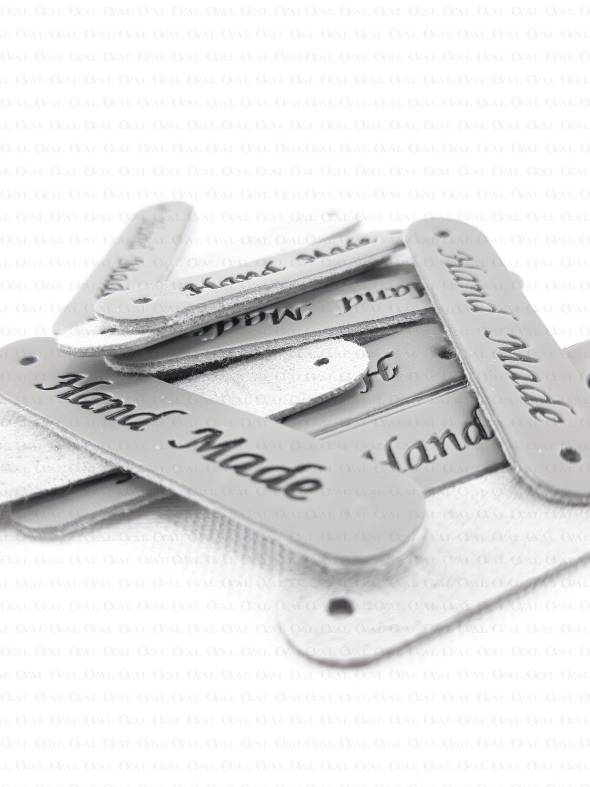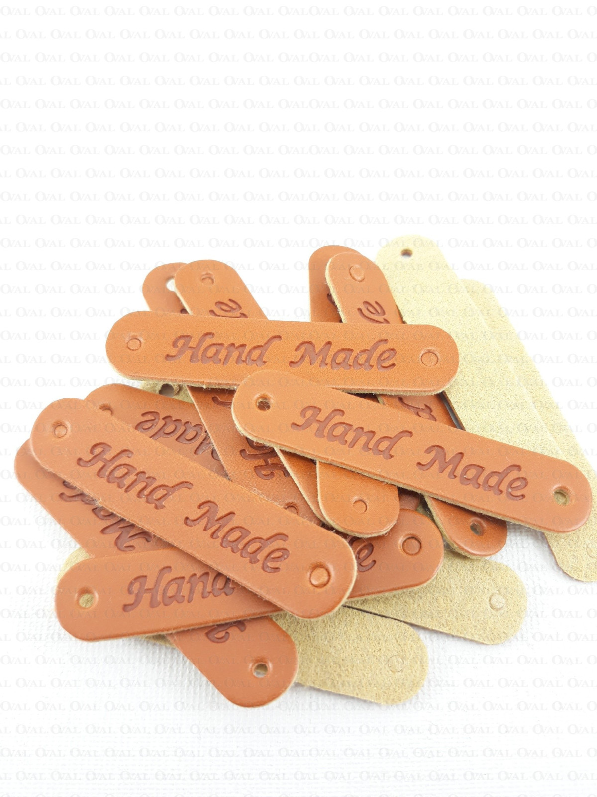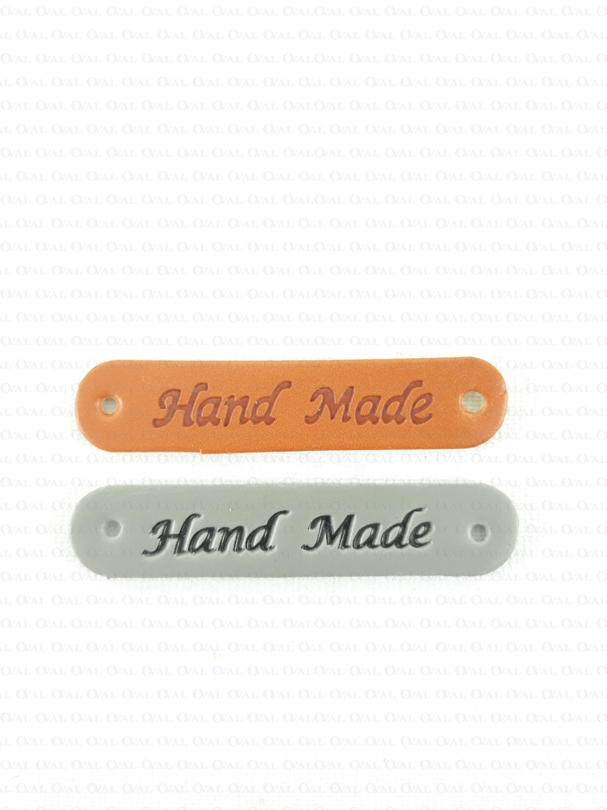 Eco-leather label with embossed HANDMADE inscription