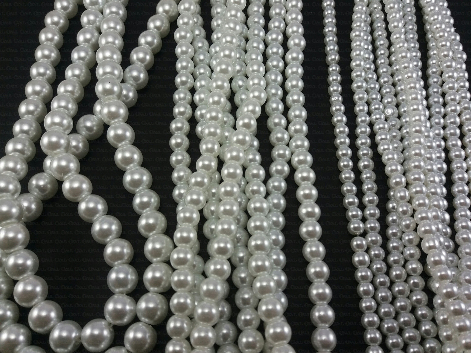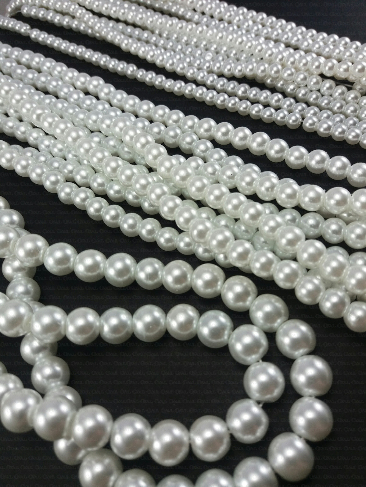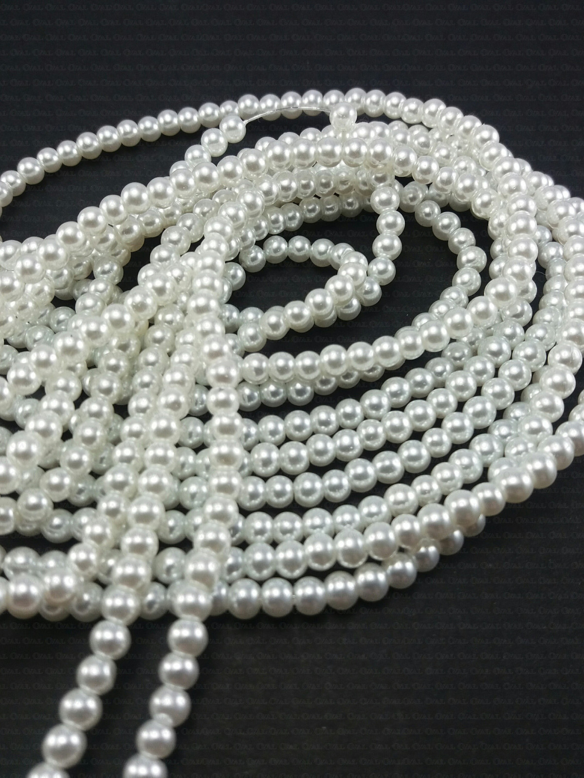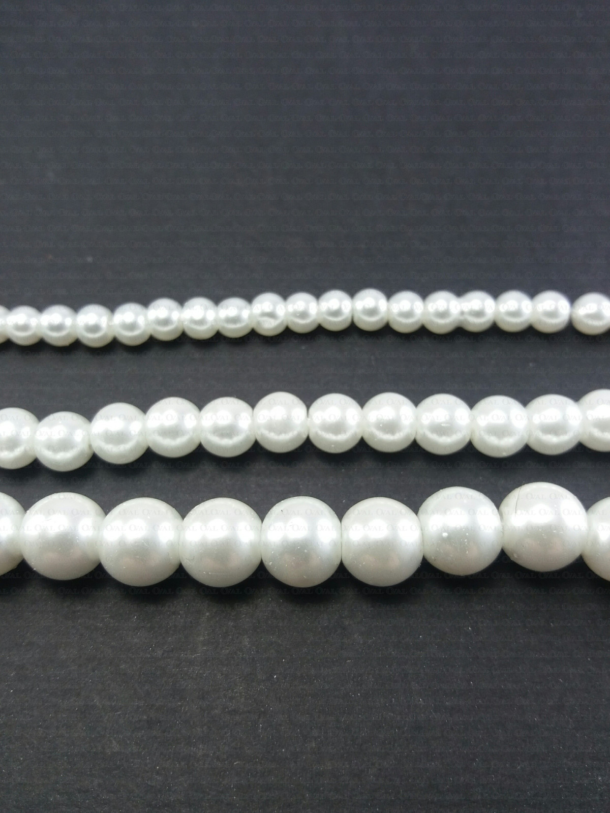 Glass pearl on a strand, very good quality, available in three colours and three sizes, strand length approximately 82 cm, the number of pieces on a strand depends on the size and is approximately 4mm - 200 pcs, 6mm - 135 pcs, 8mm - 105 pcs