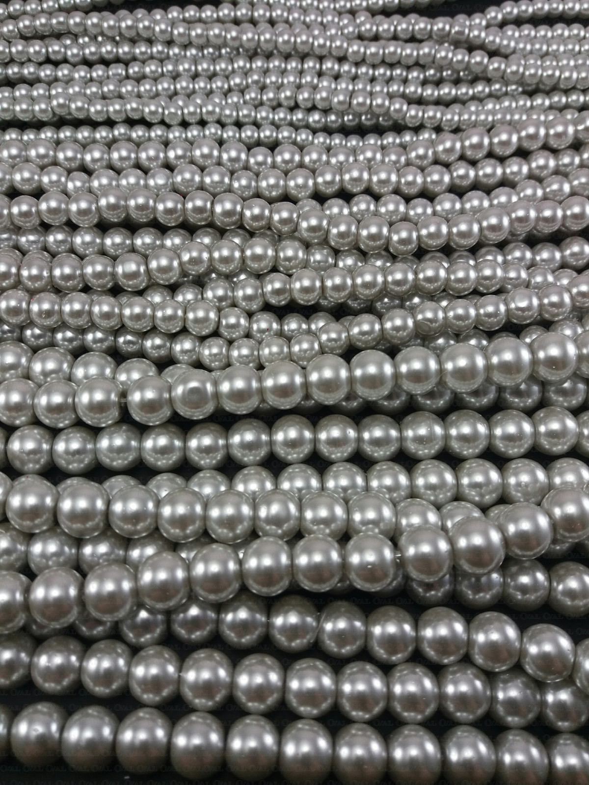 Glass pearl on a string, very good quality, available in three sizes and colours. Length of the string about 82 cm, number of pieces depends on the size and is approximately 4 mm – 200 pcs, 6 mm – 135 pcs, 8 mm – 105 pcs