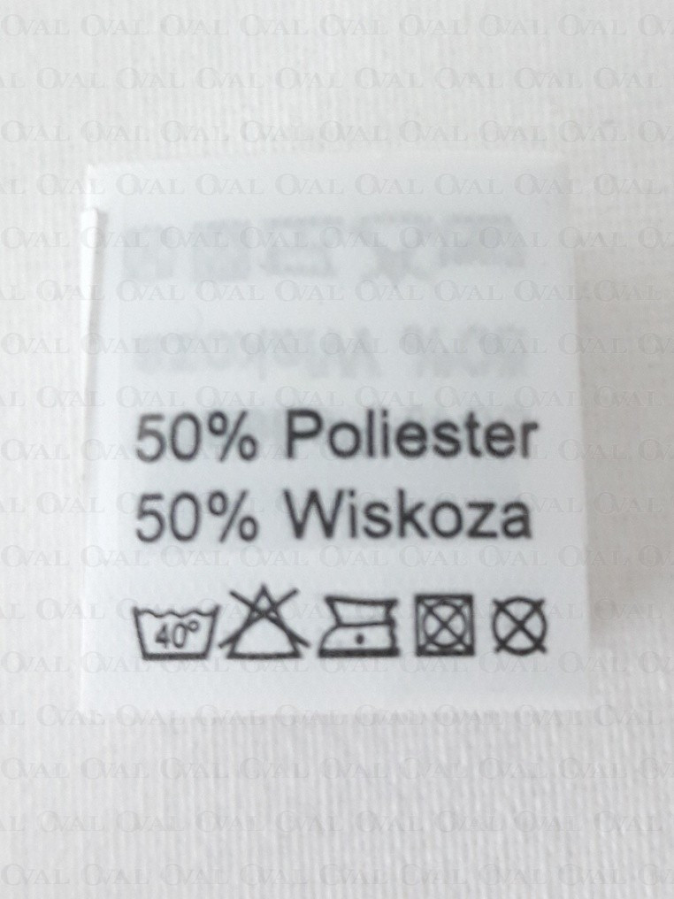 Garment label containing the fibre composition and the washing instructions for the sewn product.