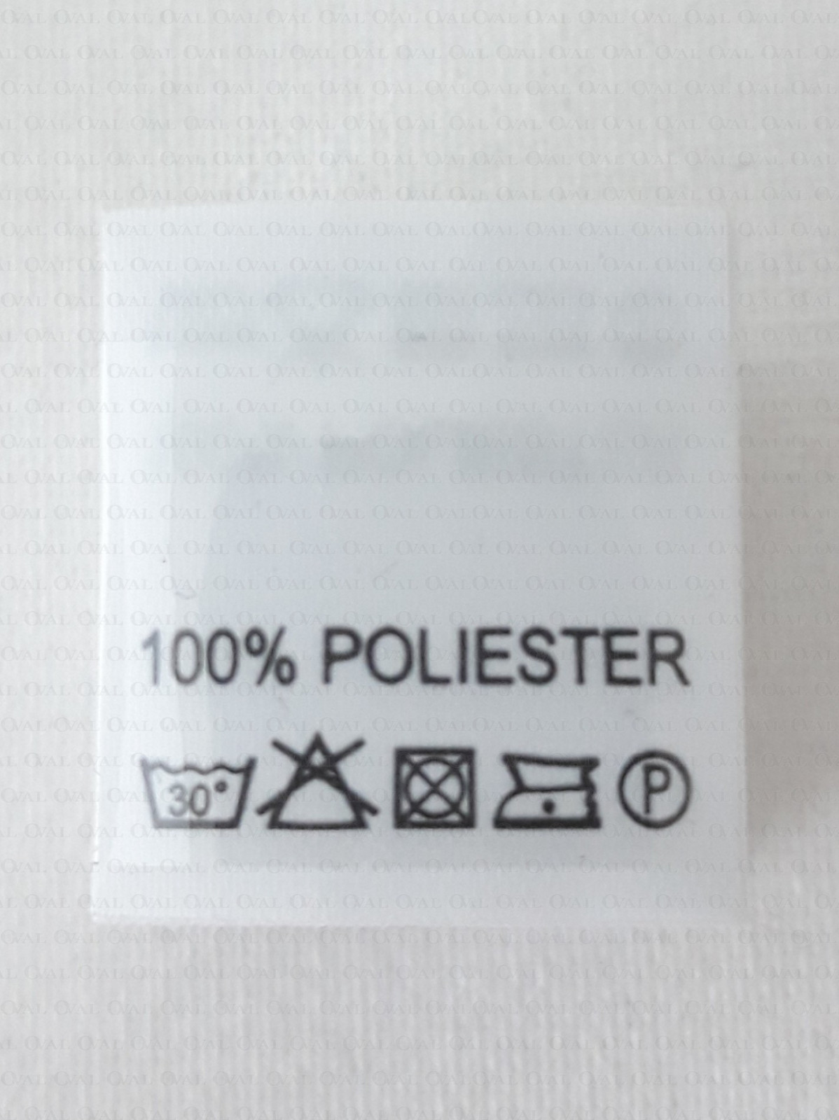 A clothing label containing the fibre composition and the washing instructions for the sewn product.