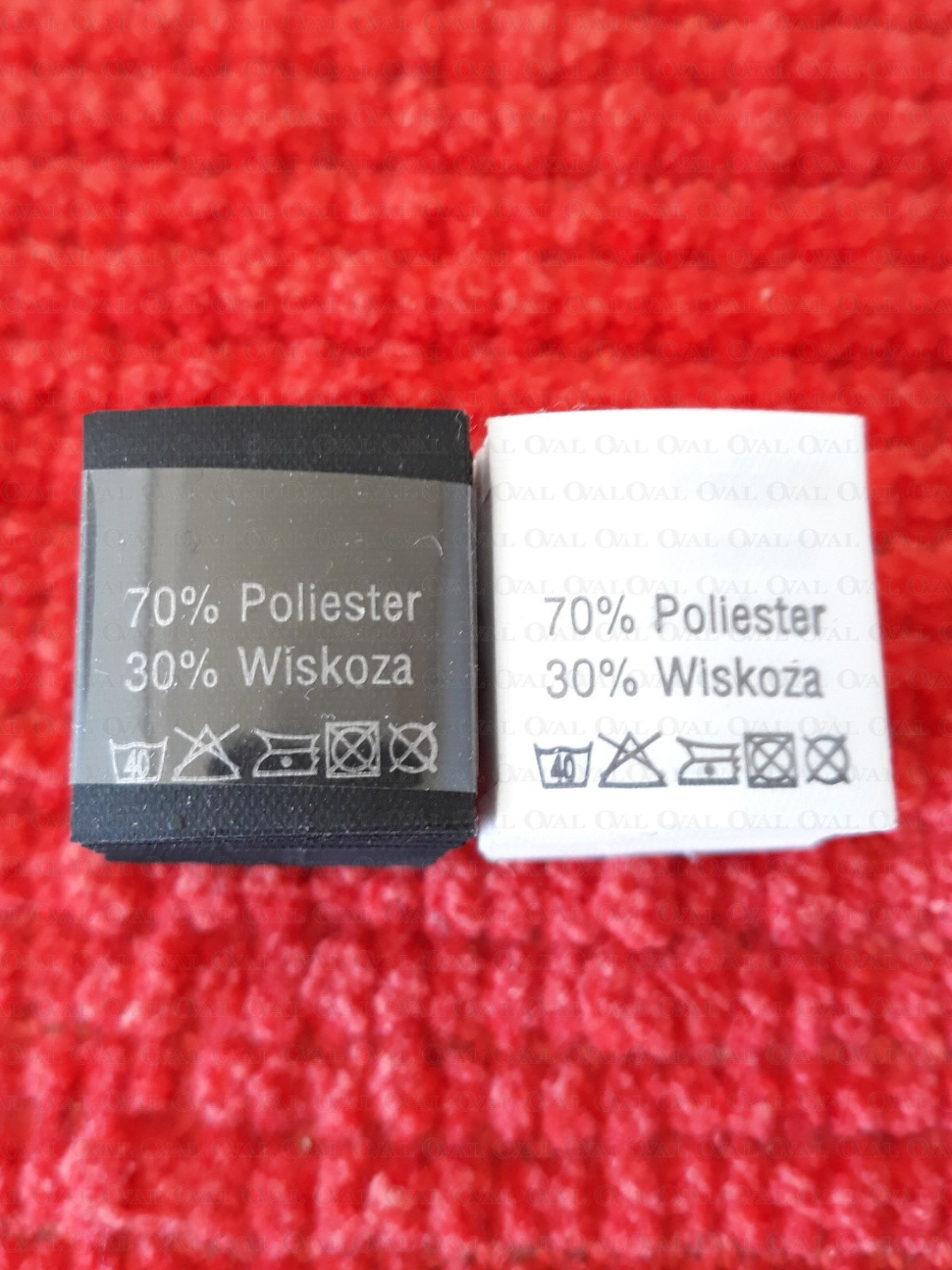 Clothing label containing the fibre composition and the washing instructions of the sewn product.