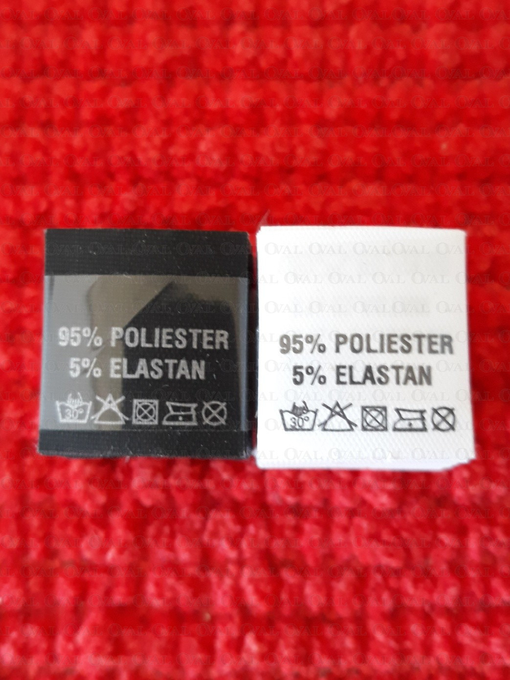 Garment label containing the fibre composition and the washing instructions for the sewn product.