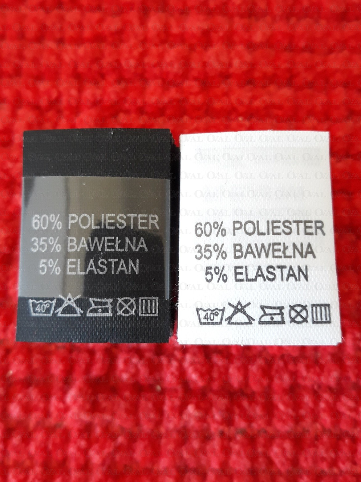 Garment label containing the fibre composition and the care instructions for the sewn product.