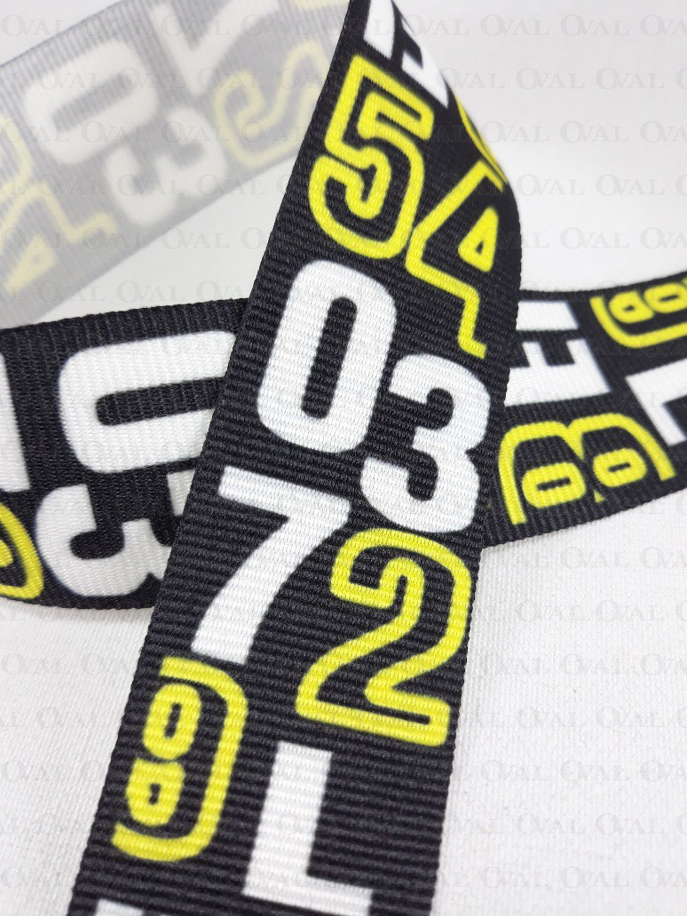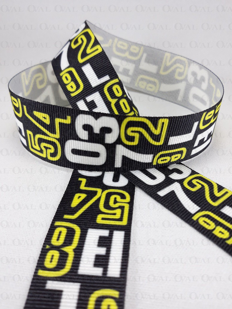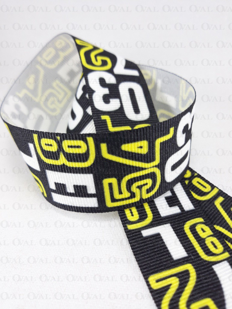 Colour: black ribbon with white and yellow inscriptions