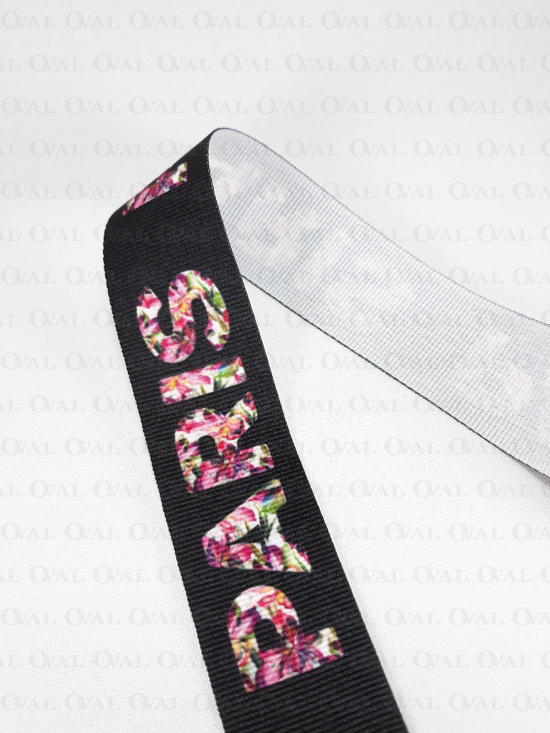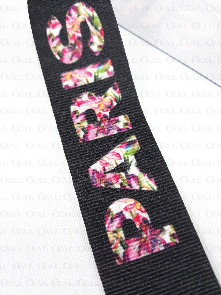Colour: black ribbon with colourful inscription