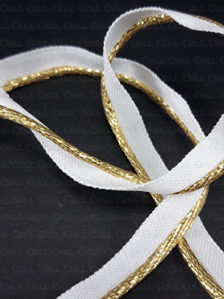 Colour: white tape with a gold edge