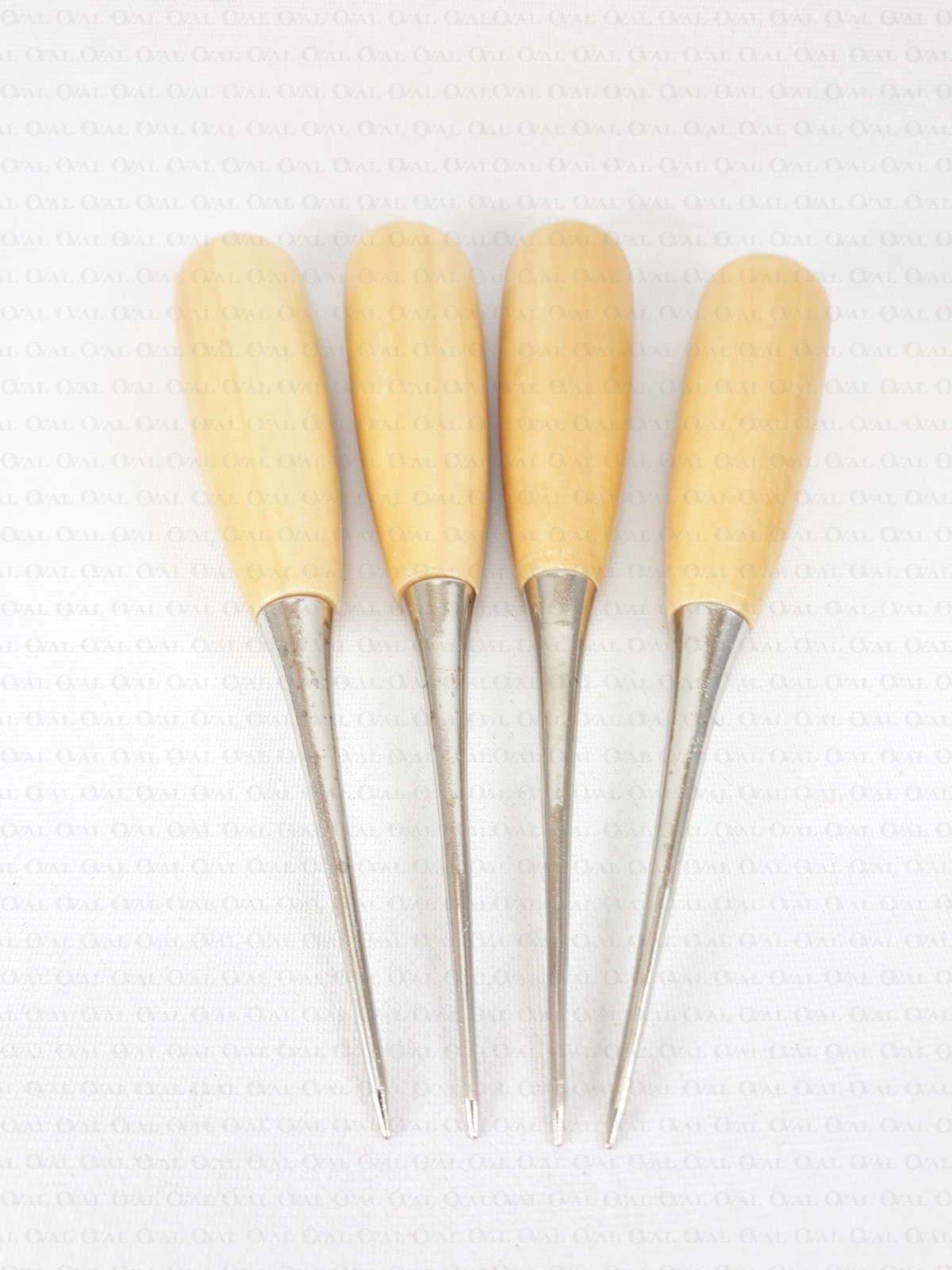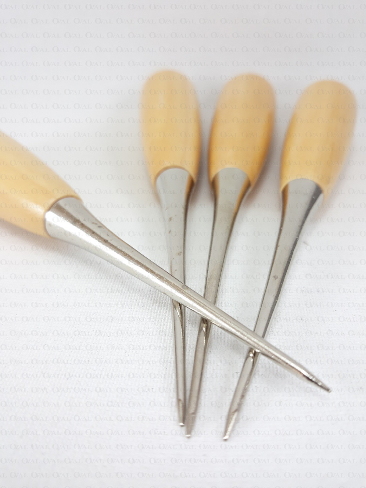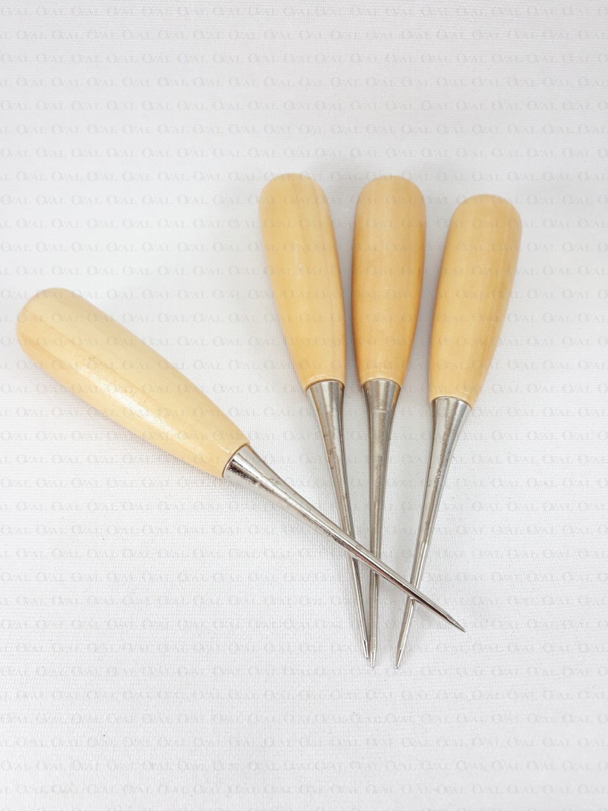 Hole punch tool with a wooden, ergonomic handle.