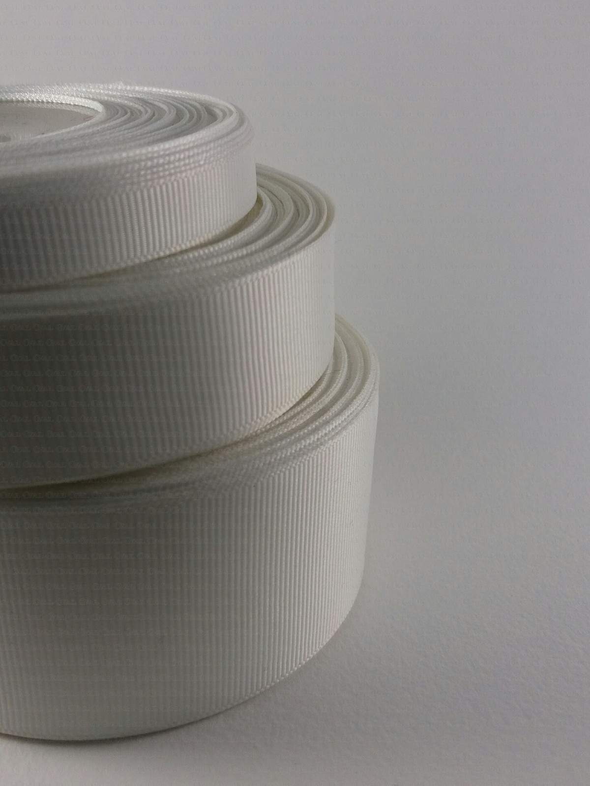 • Natural white grosgrain ribbon, 25-yard roll, 102A