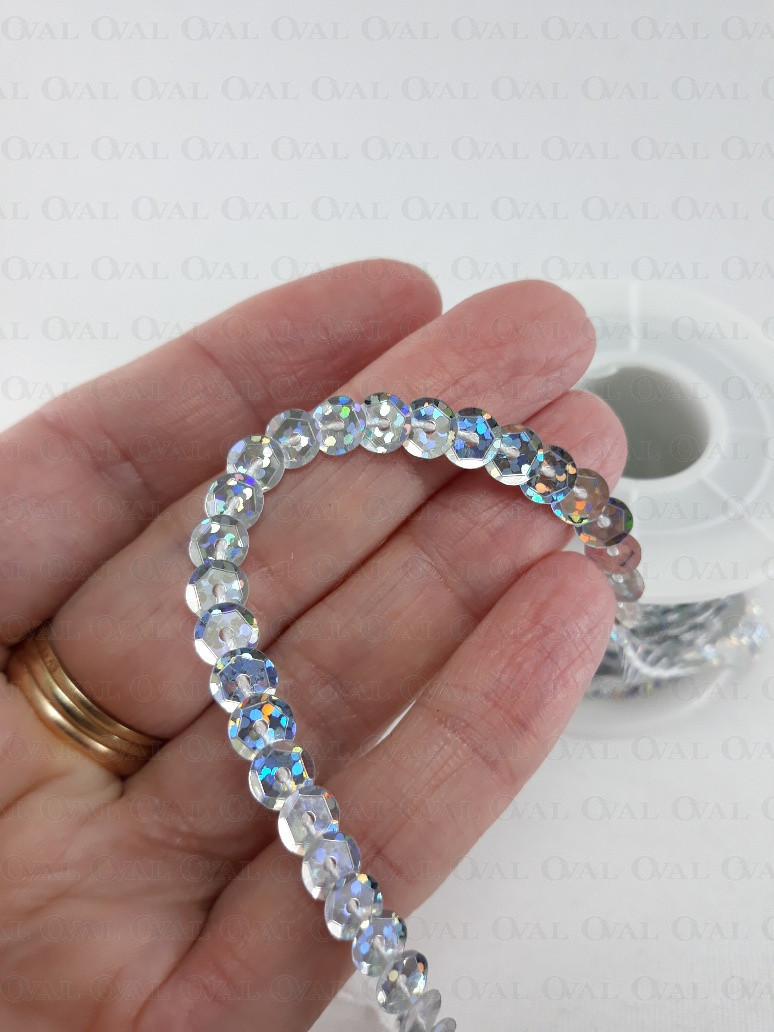Sequins on tape sold on rolls of 10 yards.
