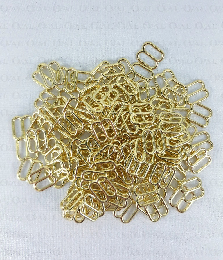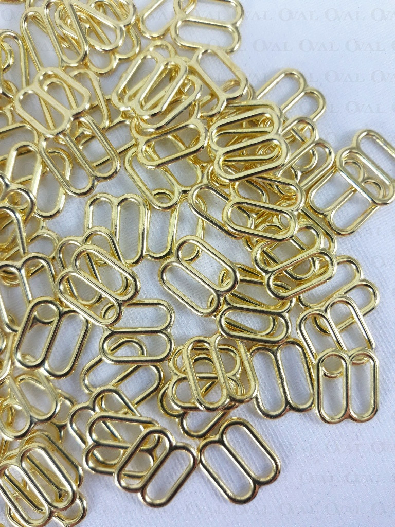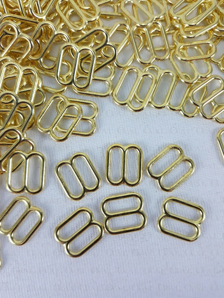 Metal adjusters in golden colour, ideal for lingerie as well as dresses and strappy tops.